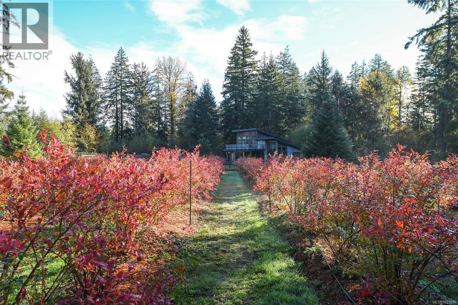 Discover serene west coast living on this nearly 5 acre sanctuary featuring a stunning, 2021 built, modern home with 3 bedrooms, 2 bathrooms, soaring ceilings, brilliant natural light, a dedicated office space, and a sunroom that frames gorgeous views of the property’s well established blueberry farm with approx. 300 thriving plants across four varietals that are fully irrigated. The main home features in floor heat in the bathrooms, Hunter Douglas custom blinds, and a vintage 1-ton hoist on display. A charming, secondary 2023 built Cameron Construction modular, rancher style home offers 2 bedrooms and 1 bathroom, perfect for guests, multigenerational living, or rental income. This home has custom blinds throughout and a 750 sqft cedar deck with a 4 person hot tub. Exceptional privacy is enhanced by two separate driveways, full fencing and an array of outbuildings, including a detached heated garage, 100ft greenhouse, chicken coop, storage sheds, a sheep shed, and a cozy art studio. (30304319)