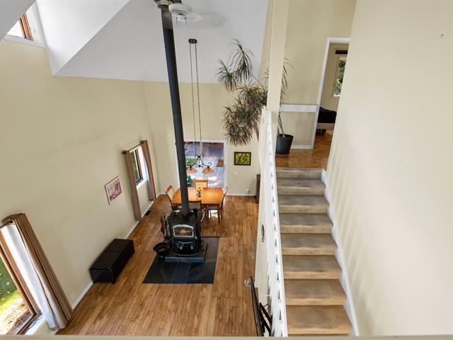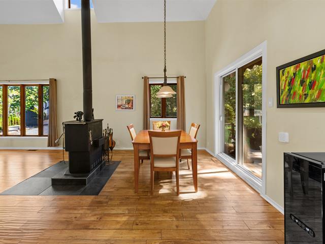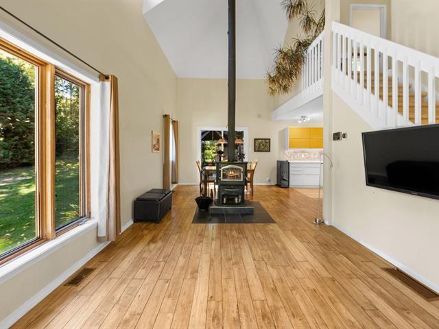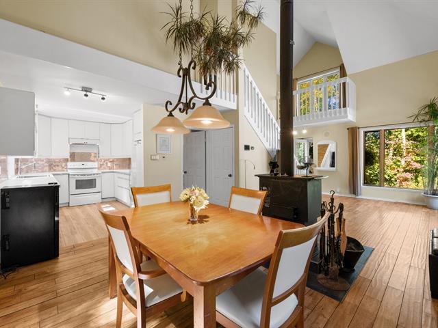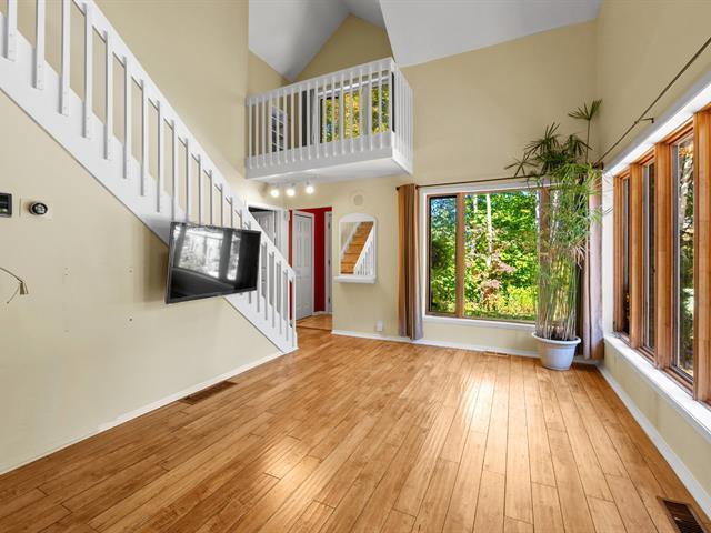 Charming townhouse located on a mountainside, offering exceptional views of the surrounding area. The interior is spacious and bright, with a large mezzanine and cathedral ceiling, giving the main room an atmosphere of grandeur and warmth thanks to its central fireplace. The property has three bedrooms and a boudoir, ideal as a relaxation area or office. A large wooded lot (shared with the neighboring unit) creates a quiet and private environment. Just five minutes from Saint-Sauveur and the ski slopes, this perfectly maintained house is an opportunity not to be missed. (56910718)