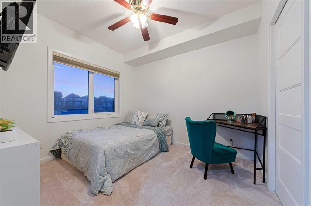 Welcome to The Pinnacle at Kincora, a boutique, meticulously crafted condominium by Cove Properties—one of Calgary’s most trusted and award-winning multifamily developers, renowned for quality construction and thoughtful design.Nestled in one of Kincora’s most peaceful enclaves, this elegant 2-bedroom plus den (or home office), 2-bath residence offers an exceptional blend of comfort, style, and functionality, all within walking distance to scenic parks, pathways, and everyday shopping conveniences.Offering 1,000 sq. ft. of spacious single-level living, this beautifully upgraded home showcases quartz countertops throughout, designer tile, luxury vinyl plank flooring, and refined fixtures and finishes. The kitchen is equipped with high-end Frigidaire stainless-steel appliances, a one-year-old microwave, and cabinetry enhanced with LED lighting, creating both style and practicality.Enjoy year-round comfort with a portable A/C unit, and appreciate thoughtful upgrades including 16 pot lights that add warmth and brightness throughout the home.A rare find in condo living, this unit includes two titled parking stalls—one heated underground and one convenient outdoor stall directly in front of the building—plus bike storage, offering outstanding flexibility and convenience.Step outside to your private, comfortable balcony, complete with wood-style flooring, a gas line, and a one-year-old, barely used Weber BBQ—perfect for relaxing or entertaining.Situated in a secure, maintenance-free, 18+ building, The Pinnacle at Kincora offers a unique combination of luxury, tranquility, and effortless living. Pets are permitted with board approval.This is a rare opportunity to own a beautifully upgraded home in an exceptional community—don’t miss your chance to make it yours. (31562002)