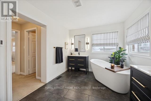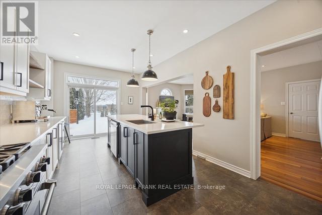 Welcome to this beautiful and thoughtfully designed executive home on a quiet court location. The main floor features 9-foot ceilings and gleaming Brazilian cherry flooring. The heart of the home is the large, bright, renovated gourmet kitchen, featuring an expansive island with a breakfast bar and walk-out access to the private backyard with gas fire pit, hot tub and sauna. The kitchen flows into the inviting family room with a gas fireplace, creating a perfect gathering space. A dedicated home office with built-in cabinets and bookshelves looks over the backyard, while the dining room and living room at the front of the home provide spaces for hosting. A laundry room with access to the garage completes the main floor. Upstairs features 4 large bedrooms, with the Primary having his/her walk-in closet and a renovated 5 pc ensuite with a soaker tub and heated floor. Two bedrooms share a Jack-and-Jill4-piece ensuite, and the 4th bedroom has its own 3-piece ensuite. The lower level features a 200 sq ft rec/games/workout room with pot lights and an engineered hardwood floor. The basement has a rough-in bathroom in the workshop area. Located within walking distance to downtown Port Perry, as well as public and Catholic elementary schools, high school, and hospital. Updates include: primary ensuite '24, front walkway interlock/landscape '22, kitchen '22, roof '20. (42008889)