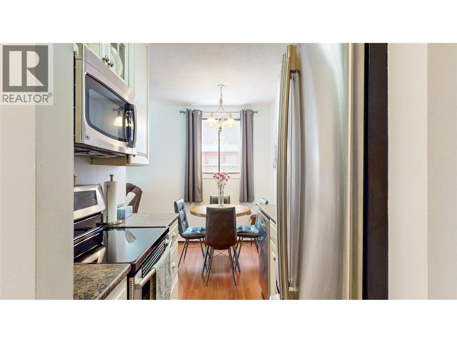 **Comfortable and Affordable Living:** This 2-bedroom, 1-bath condo in Cranbrook is a bright, east-facing corner unit located on the second floor, offering stunning mountain views. It is centrally located, just a short distance from downtown, Western Financial Place, hospitals, schools, and parks. The unit has been freshly painted and features several nice updates, including newer flooring, a kitchen with stainless steel appliances, and modern light fixtures throughout. Additionally, the suite includes a spacious storage room. Mountainview is a pet-friendly, non-smoking building with two designated smoking areas on the property, and it also has an elevator for added convenience. Recent upgrades to the building, completed in 2023, include improved parking lighting, a new roof, and new decks. There is also shed storage available for bicycles and other items. The strata fee covers heat, water, sewer, garbage pickup, laundry fees, snow removal, grounds maintenance, the roof loan, deck loan, and a designated parking spot with an electrical receptacle. Hydro costs average approximately $30.00 monthly. Quick possession is available! Call your REALTOR today for your private showing (39658139)