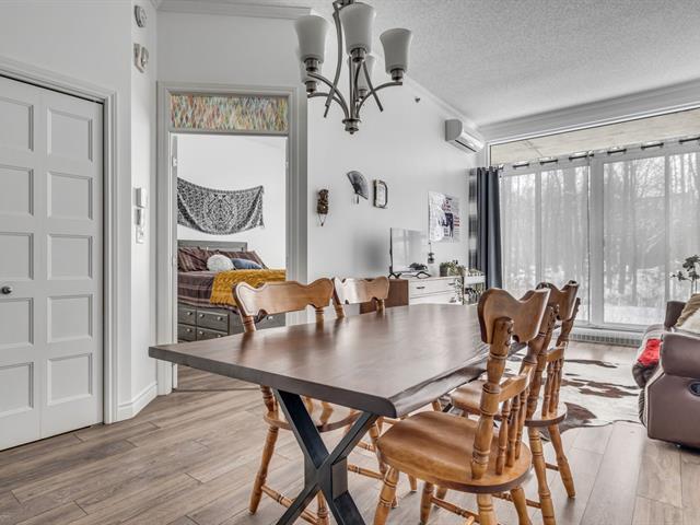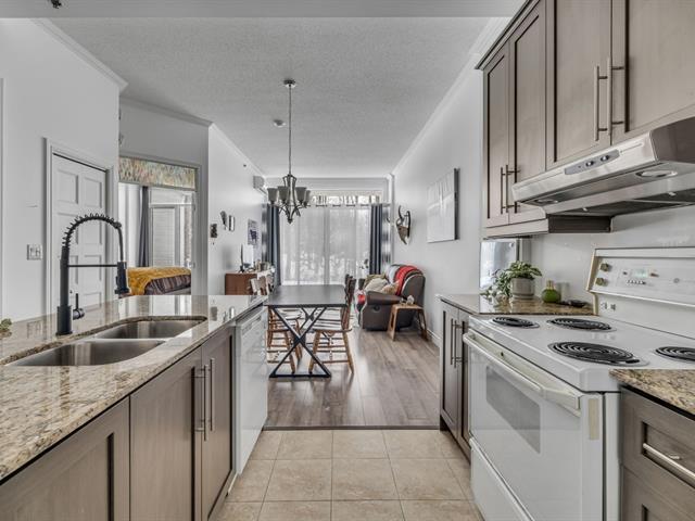 OCCUPATION FLEXIBLE. Magnifique condo offrant une aire de vie cuisine-SAM-salon ouverte, comprenant une chambre avec walk-in, un bureau idéal pour le télétravail et une salle de bain avec douche indépendante. Il offre un immense balcon de 24 pieds avec une vue apaisante sur un boisé. 2 stationnements intérieur avec rangement. Les espaces communs exceptionnels rehaussent le style de vie : immense terrasse sur le toit avec une vue magistrale, des BBQ pour recevoir, lounge et billard au sommet, piscine, tennis et gym. Pour un mode de vie sans compromis qui allie nature et confort! (50575826)