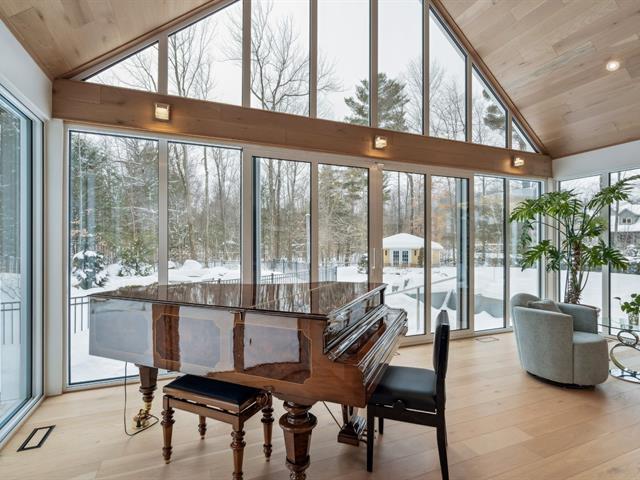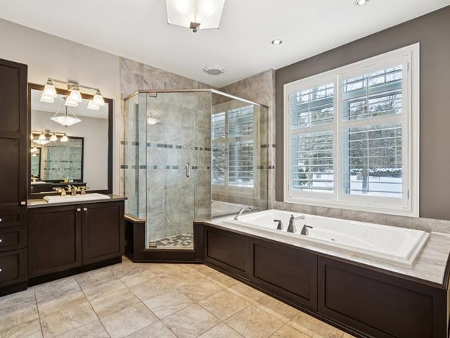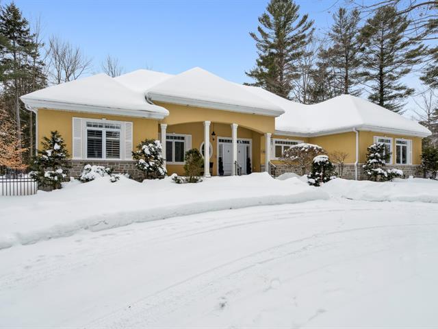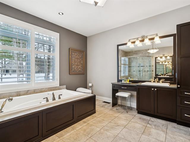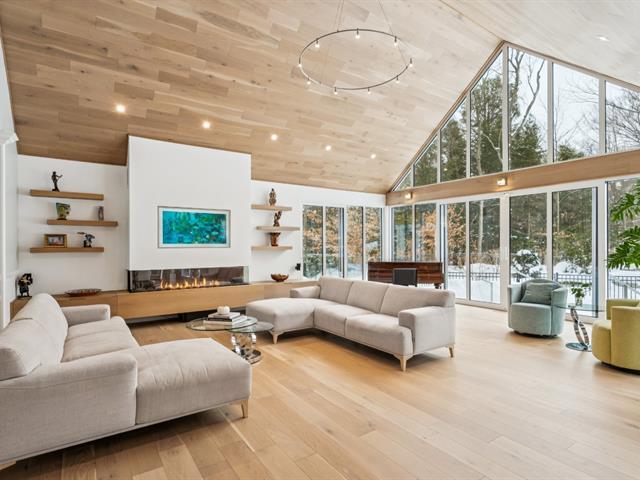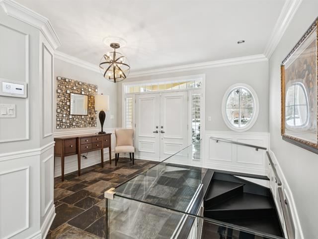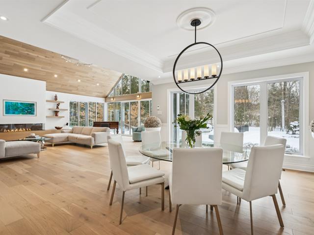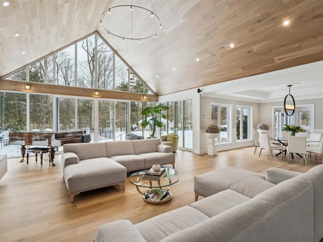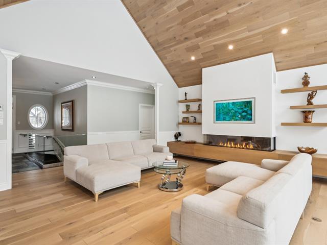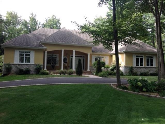 Nestled on nearly two acres on one of St-Lazare's most prestigious streets, this exceptional bungalow offers a truly spectacular private backyard oasis. Impeccably landscaped grounds featuring a heated in-ground pool, spa with waterfall, custom fire pit, multiple patio spaces, and a gated circular driveway. This 2+3 bedroom home boasts a stunning extension with soaring vaulted ceilings, expansive windows, a grand living room, elegant dining area, and a modern kitchen with heated floors. The basement includes a newly completed intergenerational suite. A rare and remarkable property. (54385638)
