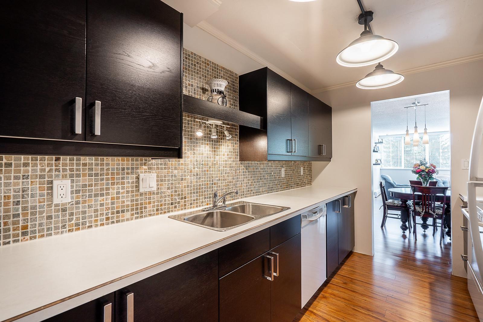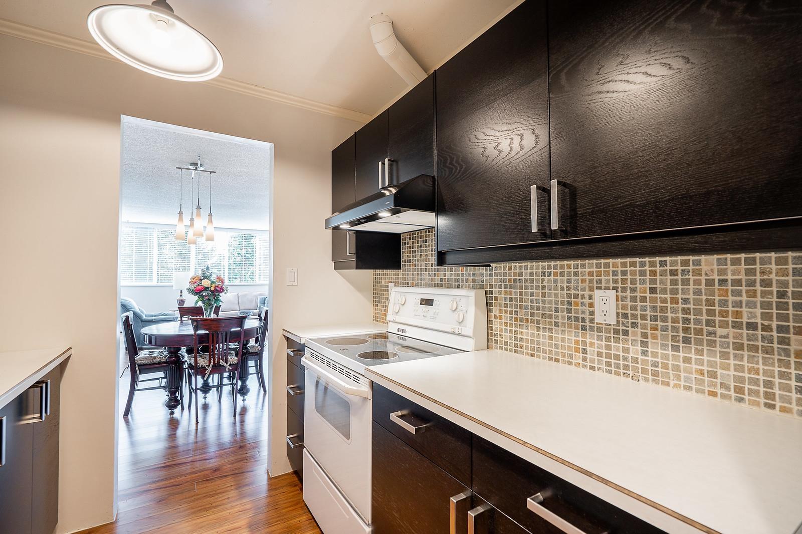 Welcome to Kennedy Tower. You Must Come see the nicest, most updated 2 bedroom, 1.5 bath condo in the area, and at a very reasonable price. The previous owner made many updates to this lovely 1162 sq ft beauty! New wood flooring thru out, new lighting, new kitchen counters and cabinets, new appliances, new master bathroom: Tub, Tile, Vanity, Toilet, Mirror and Lighting. New carpeting in the two spacious bedrooms. Master Bedroom has 2 piece ensuite and walk in closet. The Balcony has been closed in and now you enjoy an additional 157 sq ft solarium that can be enjoyed 365 days of the year! Some Mtn Views. Great Strata: Exterior painted, elevators, plumbing, parking membrane and Money still in CRF. This is a Great Opportunity to Own a home in a convenient area. No pets. (32373601)