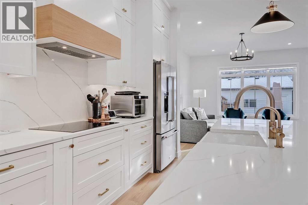Set on a quiet, tree-lined street in Windsor Park, this semi-detached home delivers a refined blend of modern design, family-friendly function, and inner-city convenience. From the bright open-concept main floor to the spa-inspired primary suite and fully developed basement, every level has been thoughtfully designed to feel elevated yet comfortable. A chef-style kitchen with standout finishes, custom built-ins, a detached garage, and a private fenced SOUTH backyard come together to create a home that truly works for real life.The main floor is flooded with natural light and finished with wide-plank hardwood flooring throughout. The living room is anchored by custom built-ins, wainscotting, electronic blinds, and a sleek gas fireplace, creating a warm and inviting focal point. The kitchen is a true showpiece, featuring full-height white cabinetry with oak accents, quartz countertops, premium stainless steel appliances, including an INDUCTION cooktop, INSTANT HOT WATER tap, and a large island with seating. A statement apron-front farmhouse sink adds both character and function, while open shelving and thoughtful storage keep the space feeling clean and intentional. The open dining area sits beside oversized windows overlooking the front yard, making the entire main floor feel bright, connected, and ideal for entertaining.Upstairs, the primary bedroom offers a calm, private retreat with large windows, custom closet storage, and a luxurious ensuite. The ensuite is beautifully appointed with dual vanities, a freestanding soaker tub, and a glass-enclosed STEAM shower finished with timeless tile. Two additional bedrooms are bright & perfectly suited for kids with custom wall details & quick access to the modern 4-pc main bath. A spacious bonus room offers ample space to spread out and the laundry room completes this space.The fully developed basement adds exceptional flexibility with a spacious family room, built-in media wall & wet bar, creating an ideal space for movie nights or casual entertaining. A dedicated home GYM space and a fully equipped private OFFICE w/ built-in desk & storage are perfect for any family, while the additional bedroom and full bathroom make the lower level comfortable and functional. Outside, the fenced SOUTH backyard offers a low-maintenance outdoor space with a concrete patio and direct access to the detached garage.Windsor Park is one of Calgary’s most established inner-city communities, known for its mature tree canopy, wide streets, and strong sense of neighbourhood. You’re minutes from Britannia Plaza, Chinook Centre, Glenmore Trail, and Elbow Drive, making daily commuting and errands effortless. Nearby parks, playgrounds, and pathways offer easy access to green space, while respected schools, transit options, and quick connections to downtown add everyday convenience. It’s a location that blends quiet residential living with exceptional access to the city.Polished inner-city living in a location that continues to deliver. (31572522)