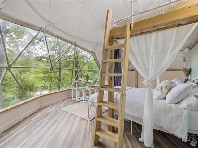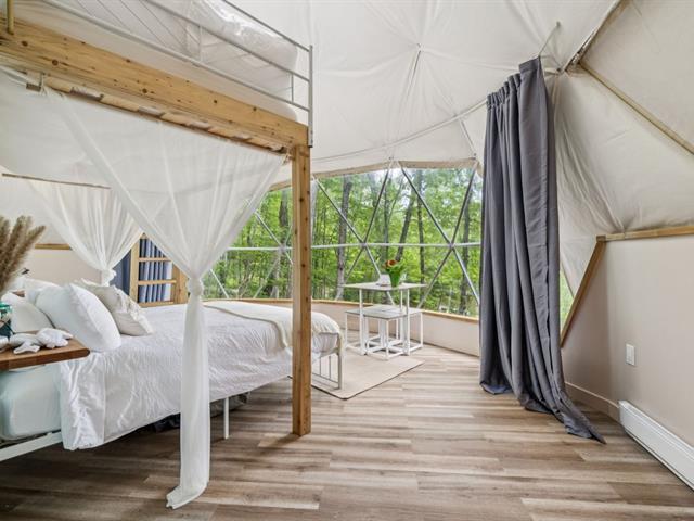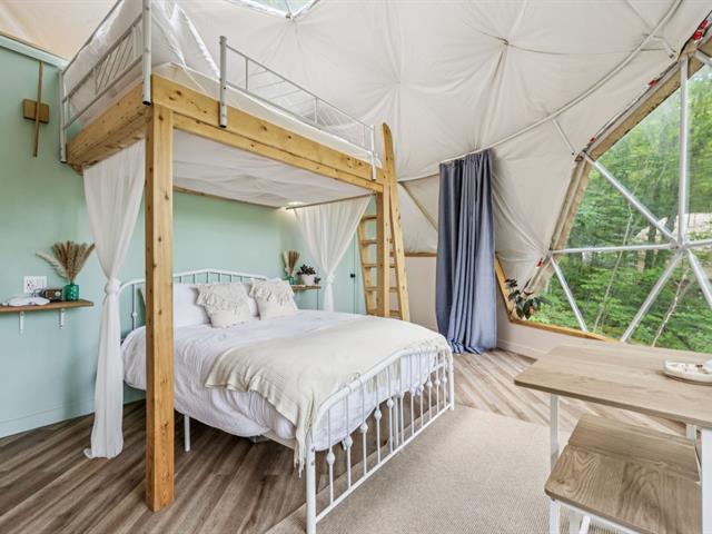 Rare opportunity to acquire a turnkey business on a large waterfront property. The property features 3 four-season domes already operating on Airbnb, each fully equipped with a complete kitchen, bathroom, bedroom, private sauna, terrace, BBQ, and dock access. This established income-generating business attracts a loyal clientele and provides consistent revenue, offering a profitable project from day one. Ideal for an investor or entrepreneur passionate about experiential lodging, combining waterfront lifestyle with financial return. The domes are registered with CTIQ for Airbnb rentals. GST/QST must be added to the asking price (50898946)