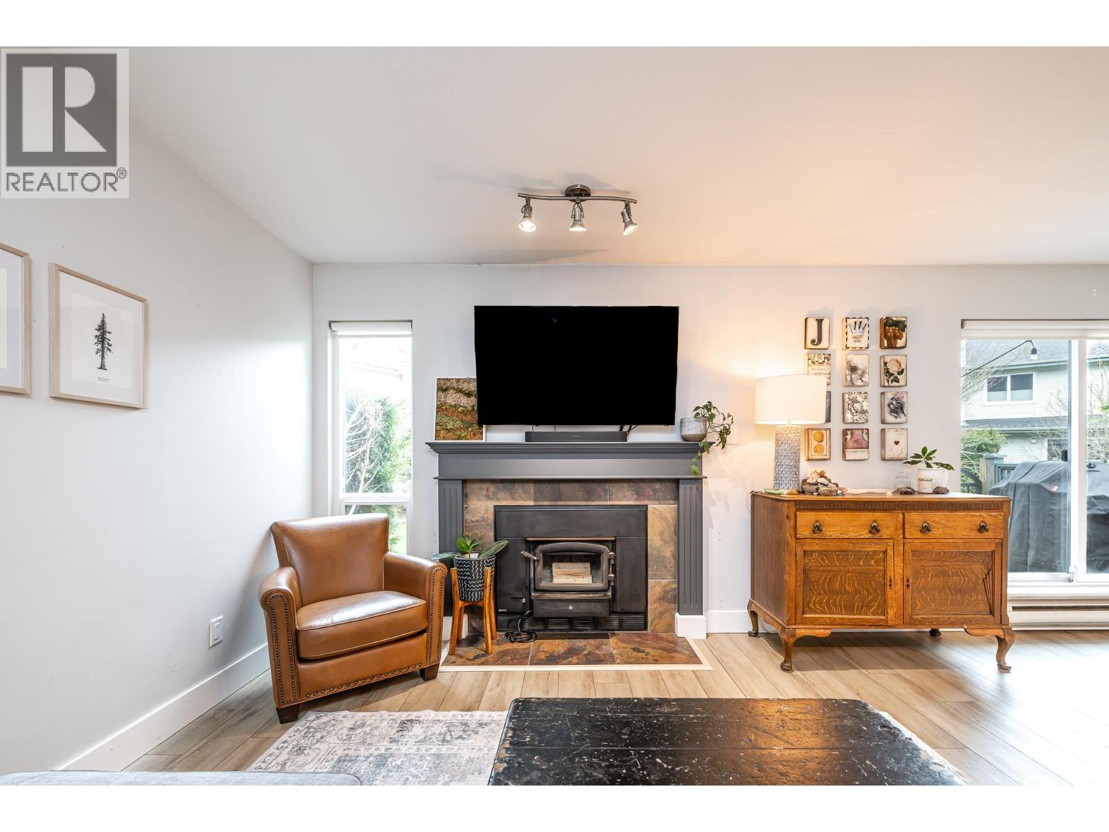 Welcome to Brackendale! A locals favourite complex - garage, driveway and huge crawl space with access from the garage. 3 Bedroom, 2 bathroom unit. Complex is well run - complex updates include asphalt driveway, windows, roof. This sunny home is the largest layout in the complex, an end unit with visitor parking close by and a children's park. All new appliances - S/S Kitchen Aid appliances and front loading washer/dryer. Luxury vinyl plank flooring on main floor. High efficiency wood stove with fan.Murphy bed. Fenced back patio backing onto green space in complex. Primary bedroom has walk in closet and cheater ensuite! Main floor bathroom has been updated to include a shower. Great location within the complex. Store your families toys, your sleds and more! This is a great starter home. (32378338)