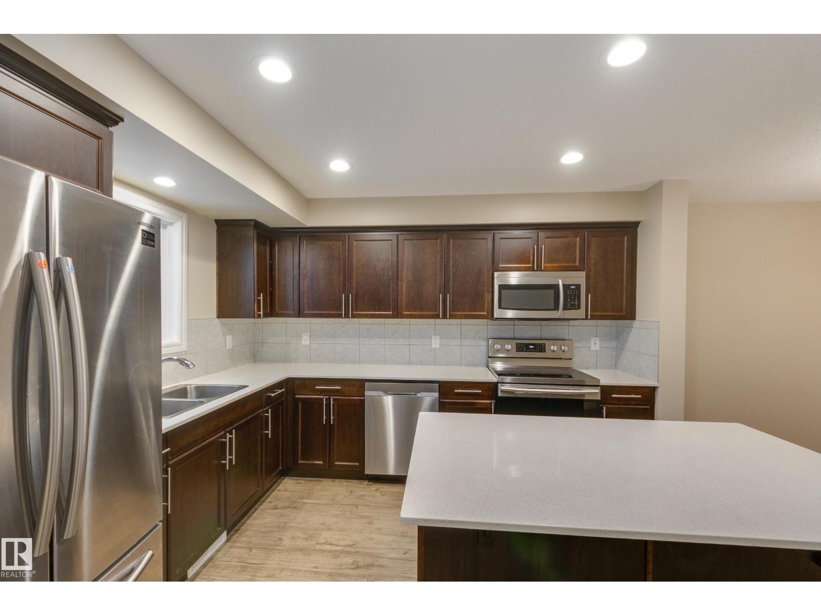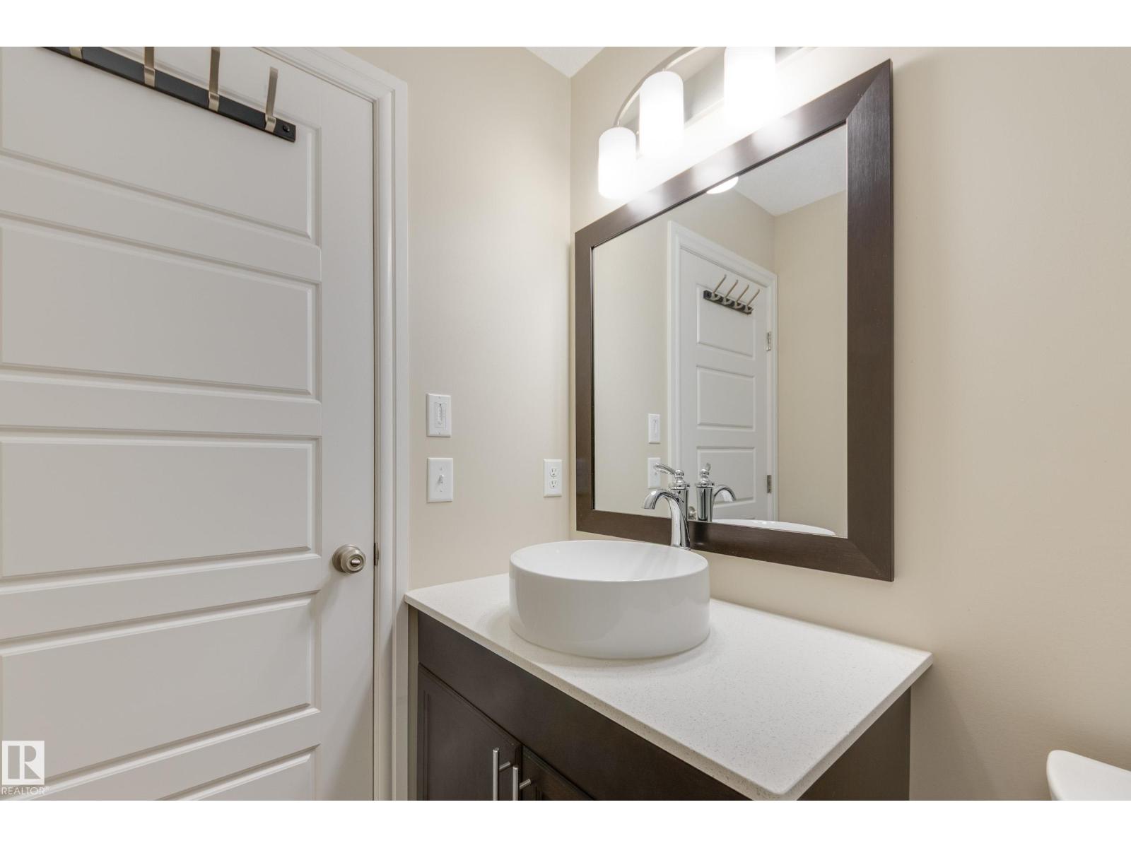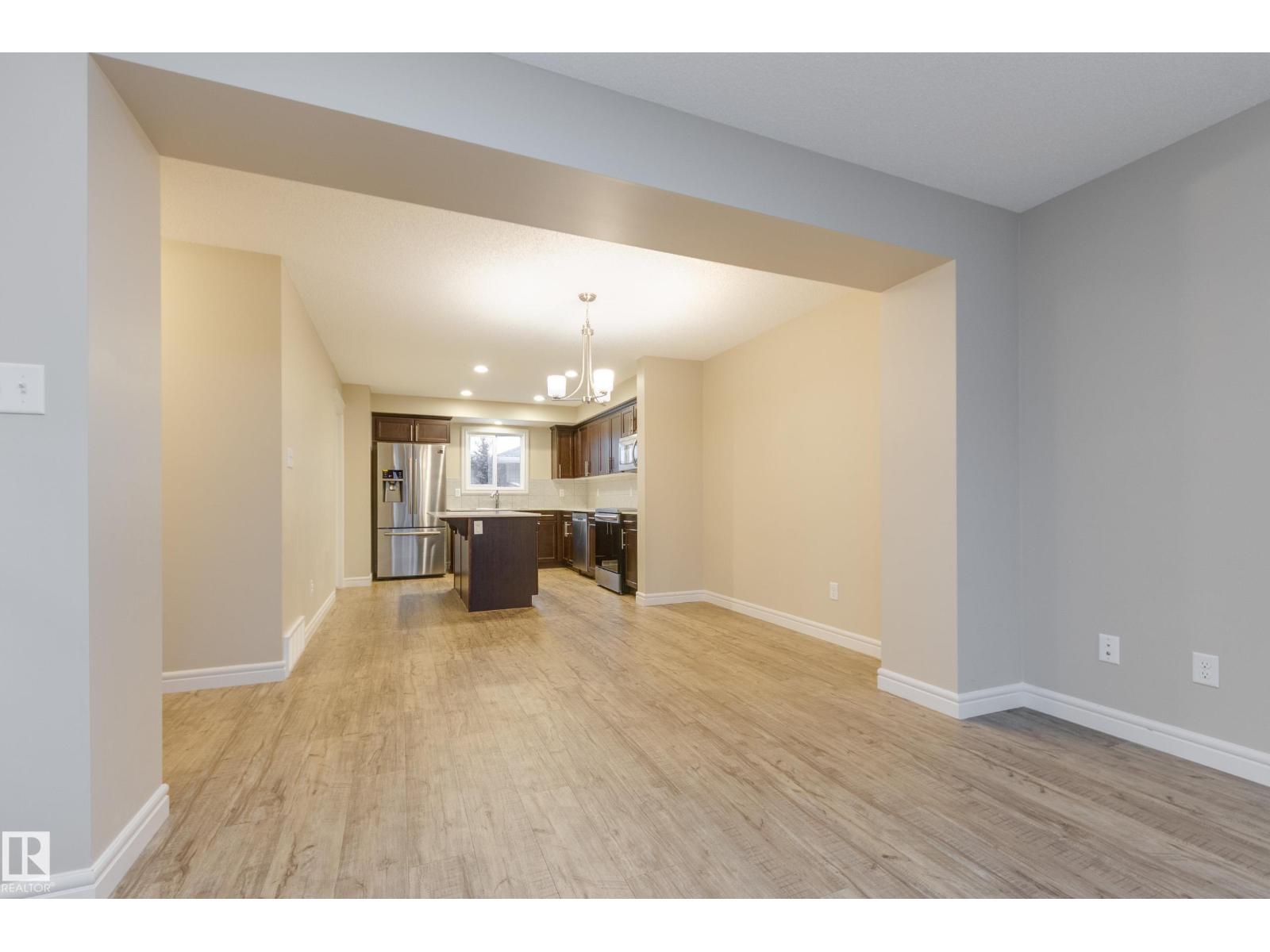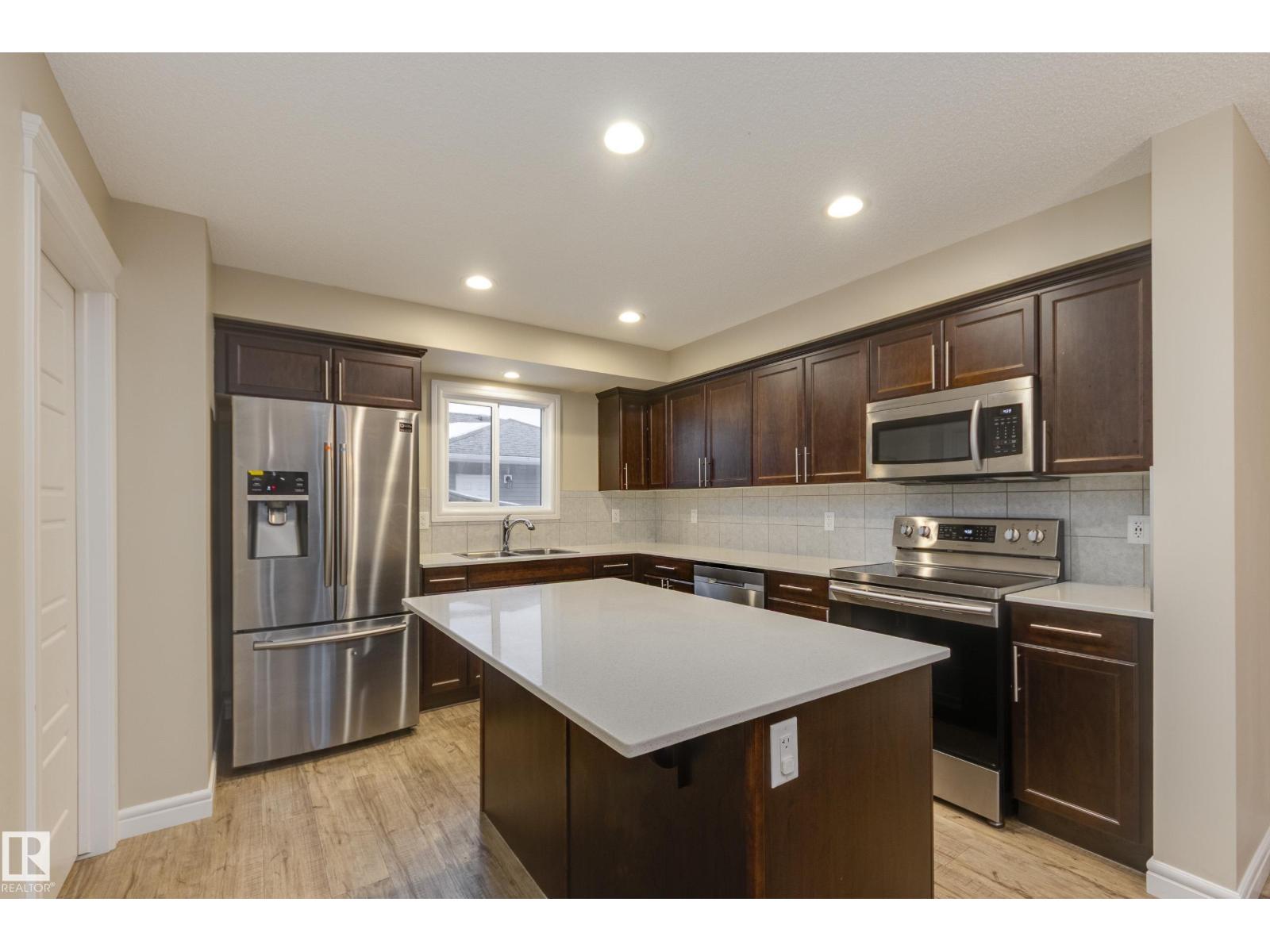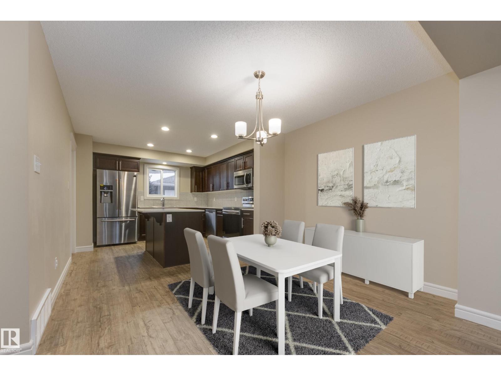 Delightful Desrochers townhome has NO CONDO FEES! Everything you could ask for PLUS a double detached garage. Great location across from the school and park. Spacious front foyer and a very open main floor with living room flowing through to dining and the kitchen at the back has a large island, quartz counter tops and lots of cabinets. Stainless steel appliances are included. Main floor laundry room at the back entrance and the half bath is strategically located at the basement entry. Basement is not developed but potential is there for adding more living space in future! The staircase to the second floor has spindle rails and an open area at the top of the stairs plus two good sized bedrooms share a full bathroom. The primary suite is large with a full ensuite bath and a large walk-in closet. This is a perfect affordable home in an exceptional location. Also includes water treament!! (33770301)