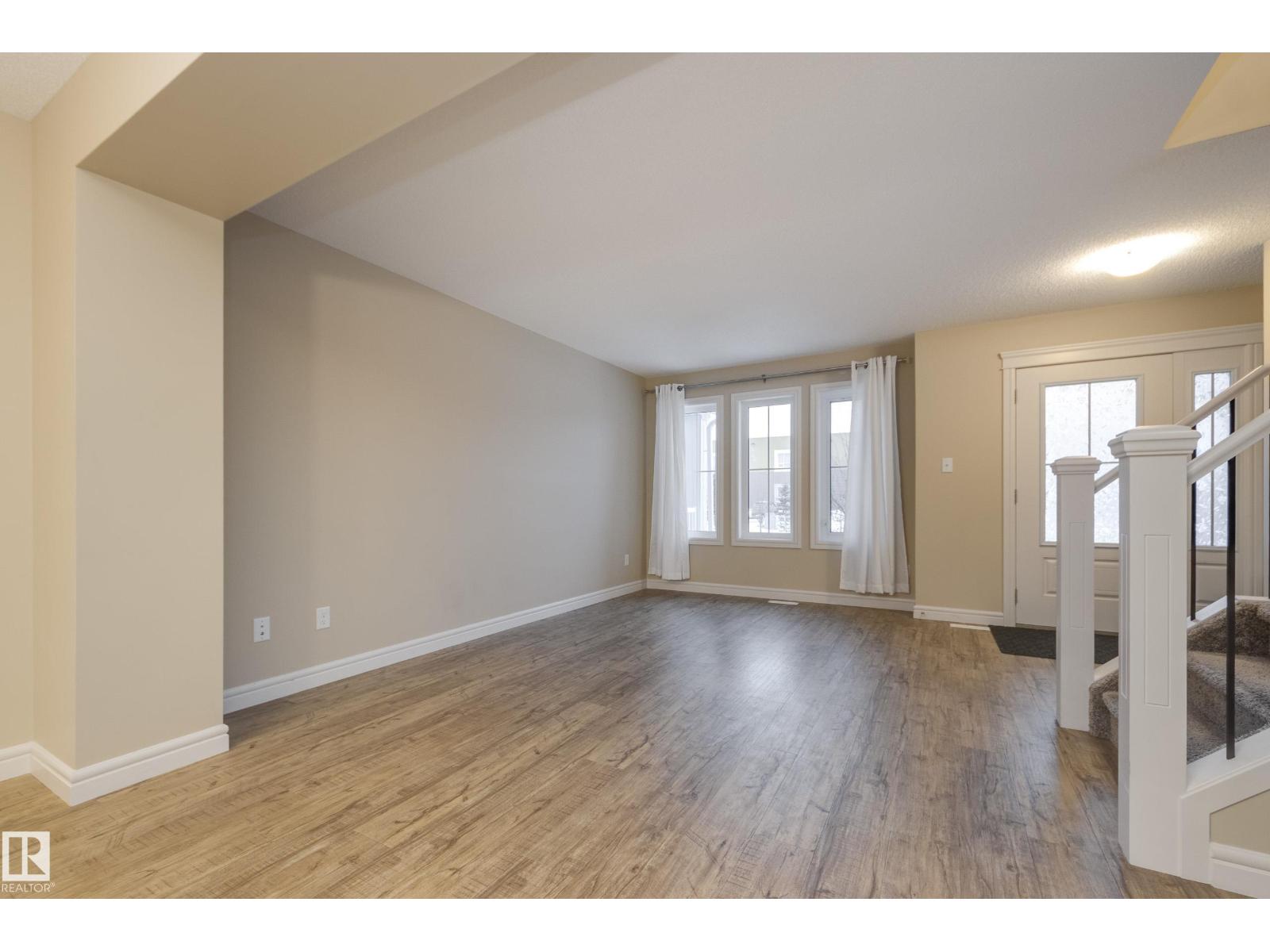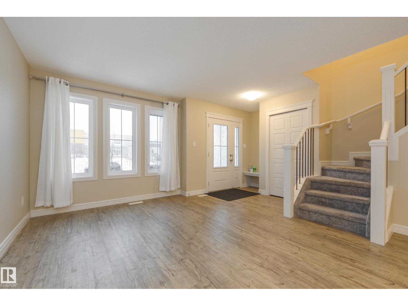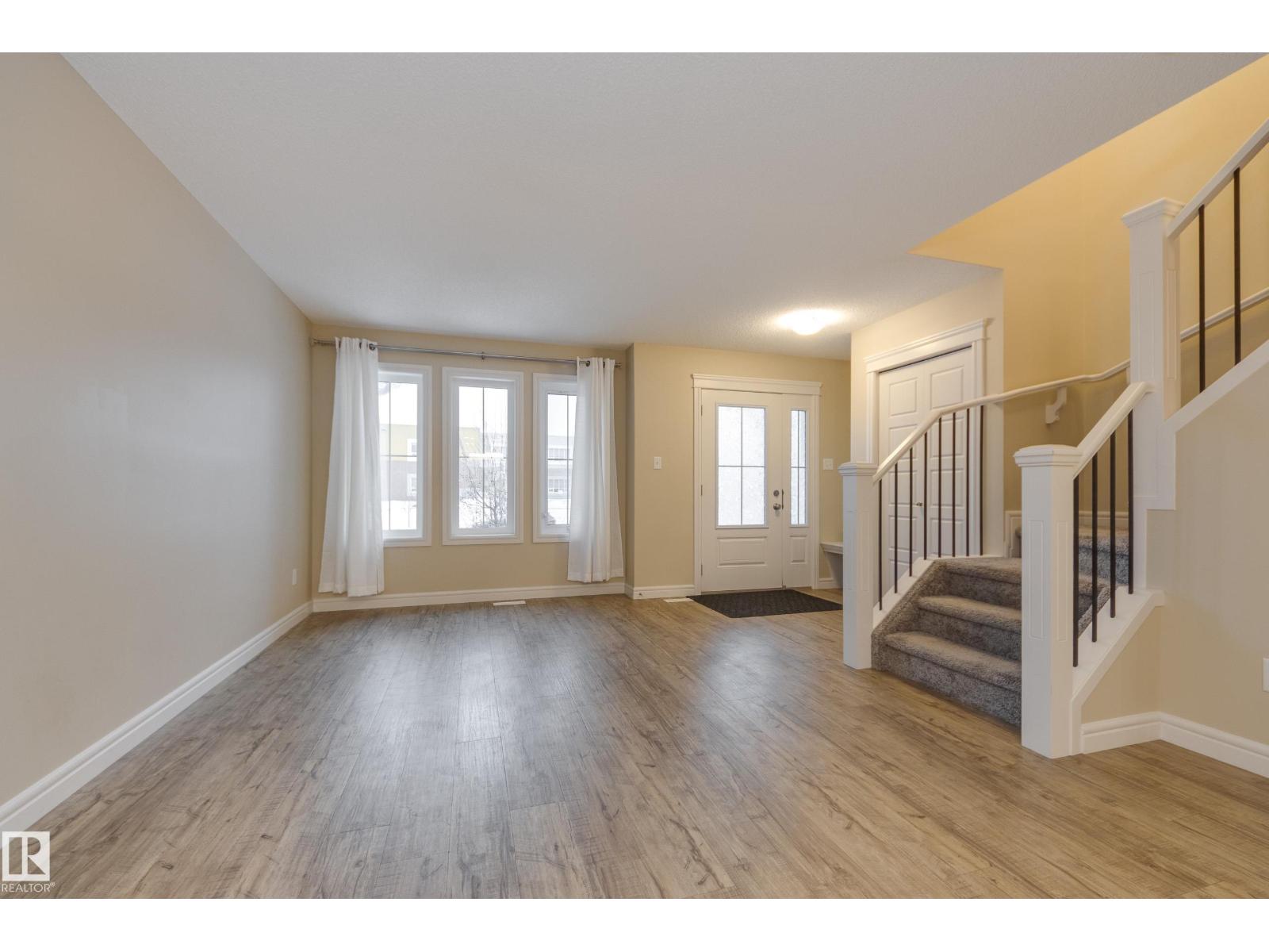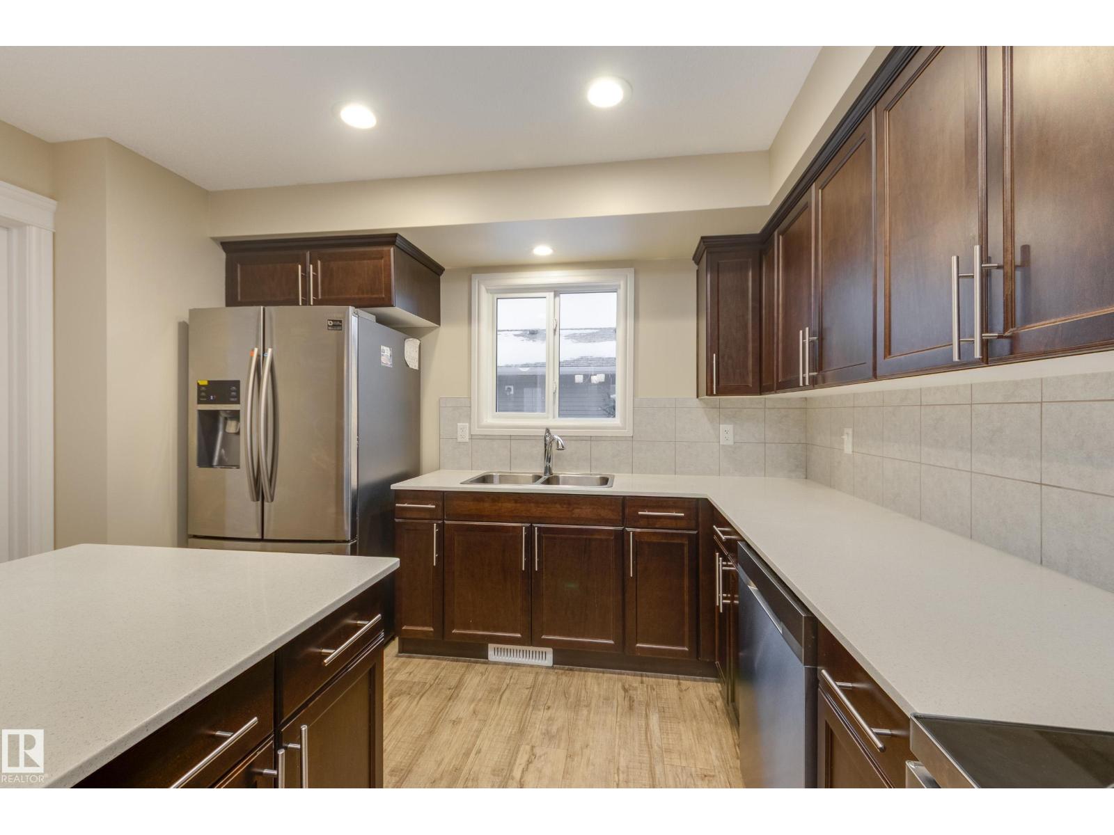 Delightful Desrochers townhome has NO CONDO FEES! Everything you could ask for PLUS a double detached garage. Great location across from the school and park. Spacious front foyer and a very open main floor with living room flowing through to dining and the kitchen at the back has a large island, quartz counter tops and lots of cabinets. Stainless steel appliances are included. Main floor laundry room at the back entrance and the half bath is strategically located at the basement entry. Basement is not developed but potential is there for adding more living space in future! The staircase to the second floor has spindle rails and an open area at the top of the stairs plus two good sized bedrooms share a full bathroom. The primary suite is large with a full ensuite bath and a large walk-in closet. This is a perfect affordable home in an exceptional location. Also includes water treament!! (33770301)