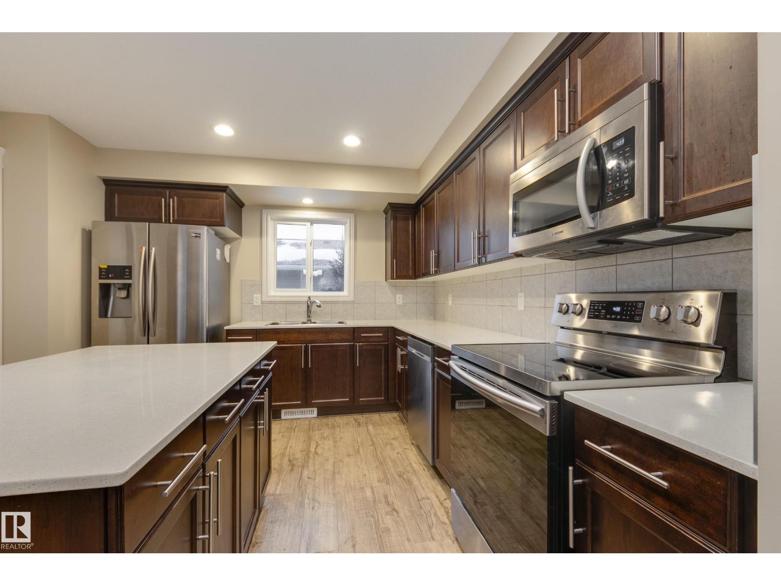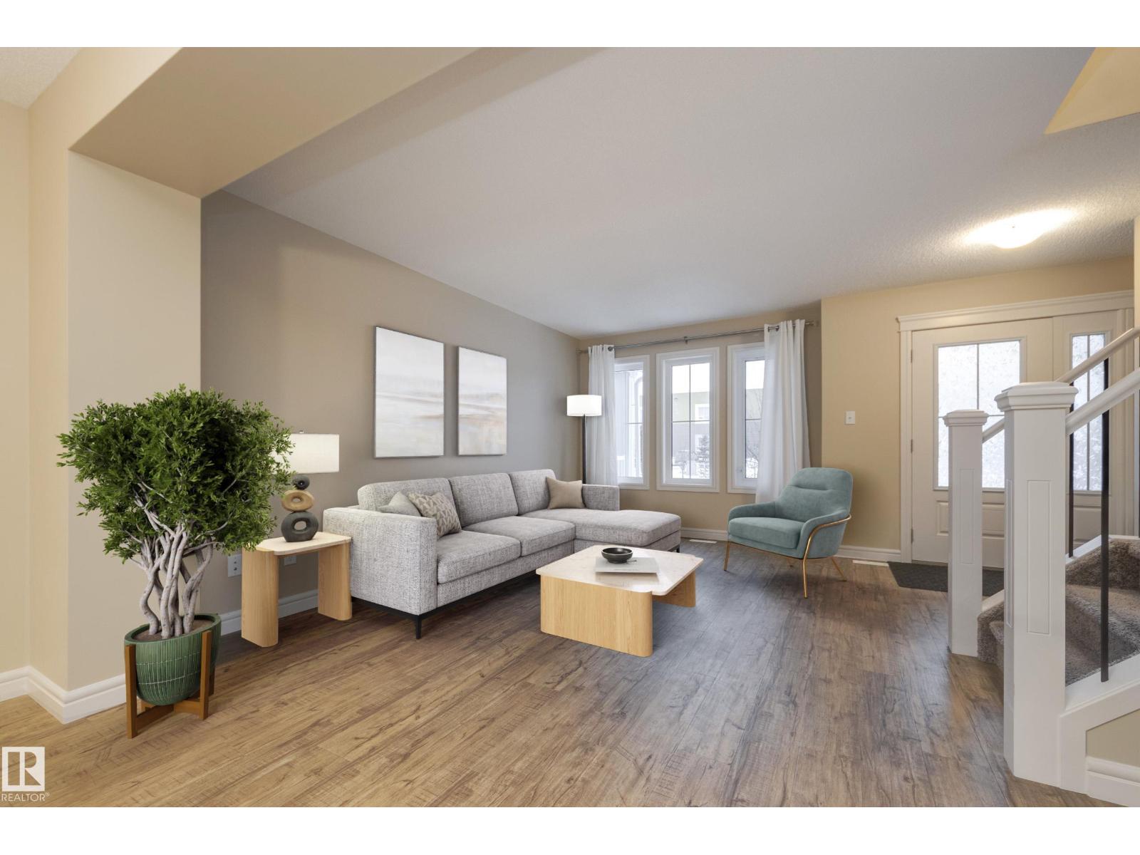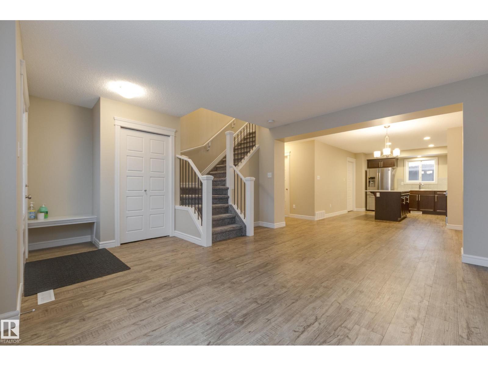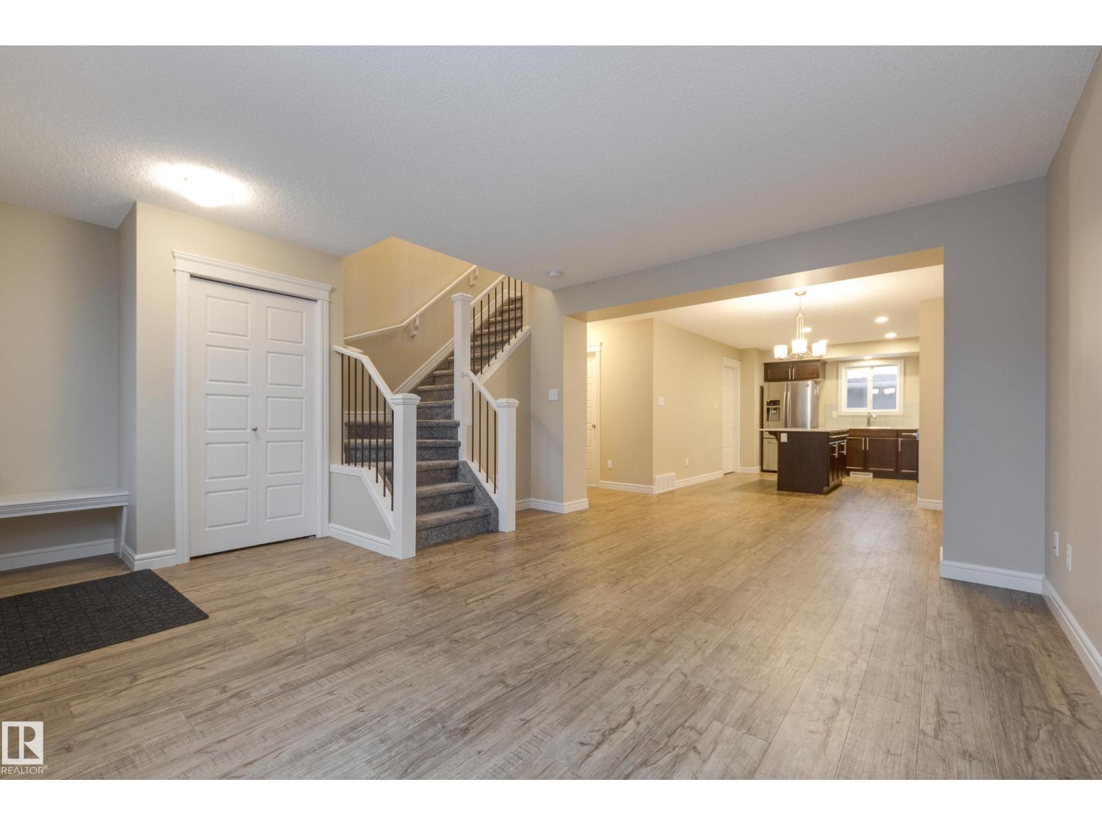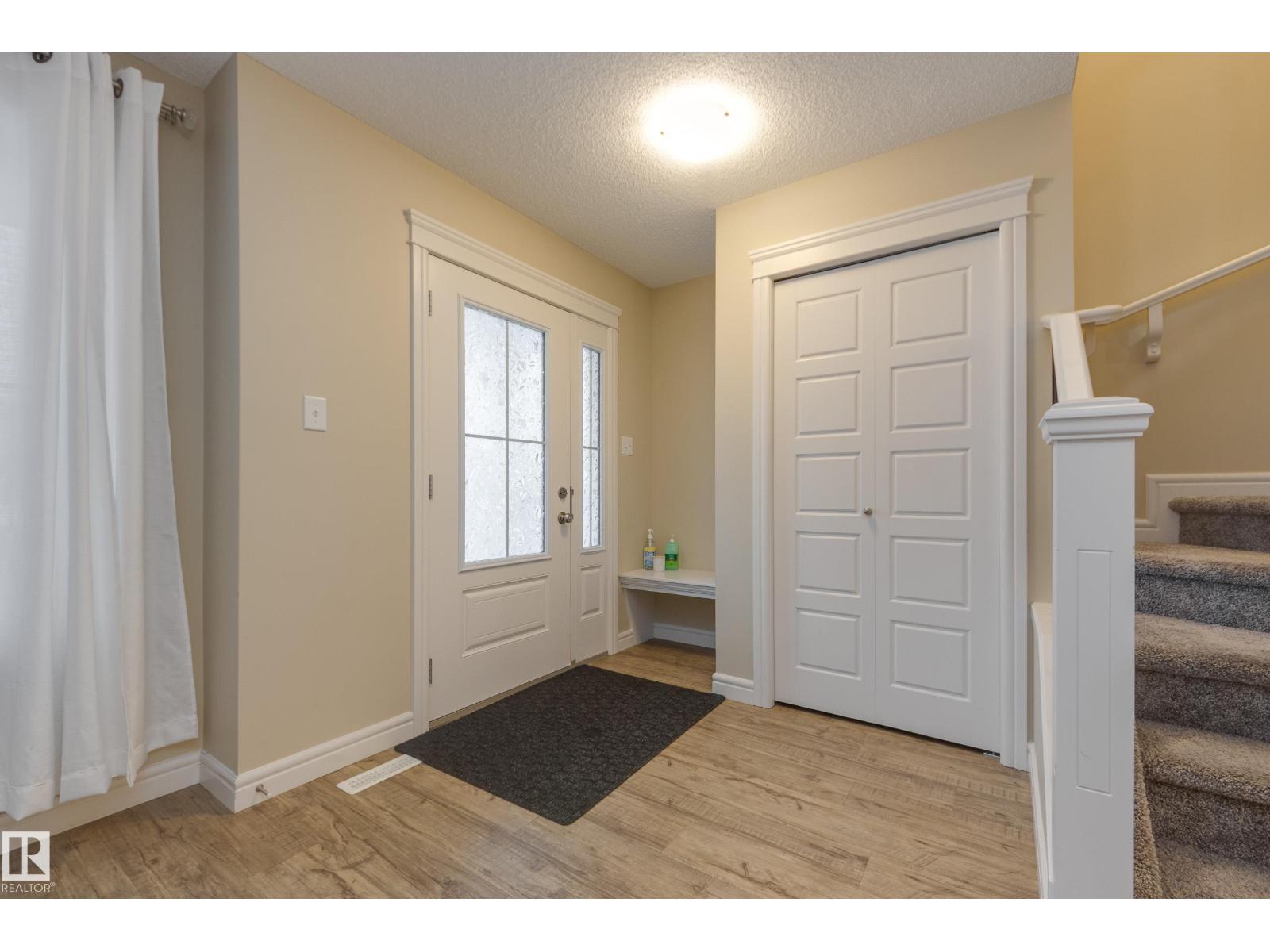 Delightful Desrochers townhome has NO CONDO FEES! Everything you could ask for PLUS a double detached garage. Great location across from the school and park. Spacious front foyer and a very open main floor with living room flowing through to dining and the kitchen at the back has a large island, quartz counter tops and lots of cabinets. Stainless steel appliances are included. Main floor laundry room at the back entrance and the half bath is strategically located at the basement entry. Basement is not developed but potential is there for adding more living space in future! The staircase to the second floor has spindle rails and an open area at the top of the stairs plus two good sized bedrooms share a full bathroom. The primary suite is large with a full ensuite bath and a large walk-in closet. This is a perfect affordable home in an exceptional location. Also includes water treament!! (33770301)