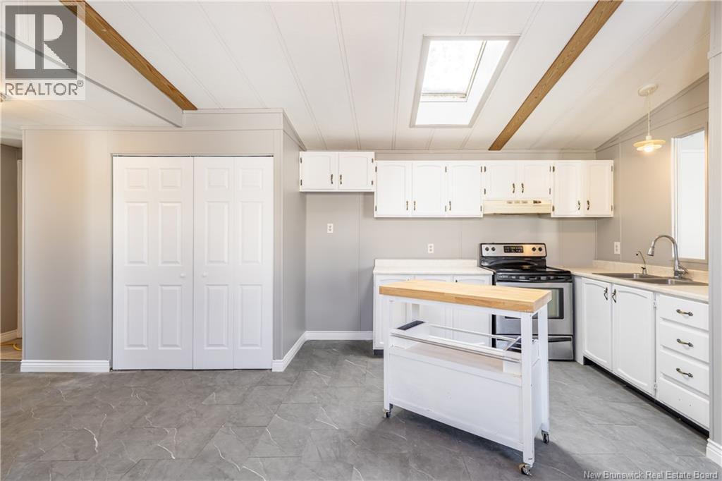 Located on a quiet street in the Tamarack neighbourhood of Lincoln, this renovated three-bedroom mini home offers an excellent opportunity for affordable living. Conveniently situated between Fredericton & Oromocto, the property provides easy access to both communities & nearby amenities. The home features a bright, open-concept kitchen & dining area with a cathedral ceiling, a skylight, & white cabinetry, creating an airy & welcoming atmosphere. From the kitchen, the layout flows naturally through the home, offering both functionality & comfort. Down the hall, youll find a laundry area, a full bathroom complete with a jetted tub/shower, & two of the three bedrooms. On the opposite end of the home is the spacious living room, offering plenty of room for daily living, while the generously sized primary bedroom provides a comfortable & private retreat from the rest of the home. 2026 upgrades include fresh paint throughout, updated flooring, new interior trim, doors, & baseboards, new baseboard heaters, & additional improvements that enhance both comfort & efficiency. Outside, the property offers a large front deck, a storage shed, & a double-wide gravel driveway. A well-maintained home that delivers great value in todays market, ideal for those seeking a cost-effective housing solution. (29433145)