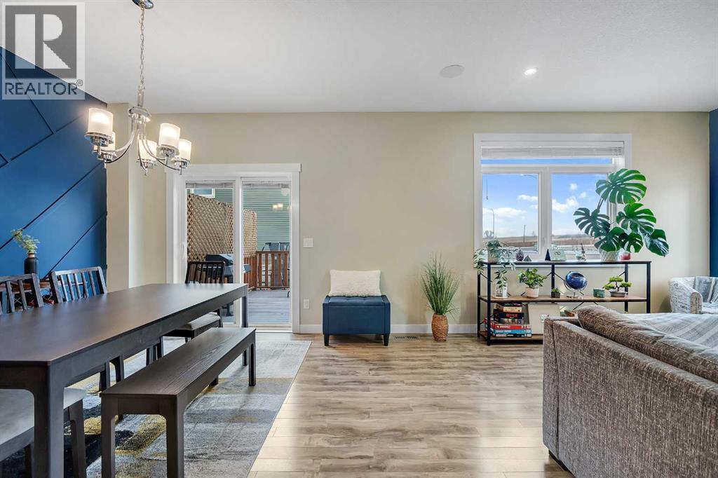 **OPEN HOUSE - Sunday, Feb. 8, 12pm to 2pm**. Welcome to this exceptional family home in the sought-after community of Lakewood, Strathmore, where refined living meets everyday comfort, just 30 minutes from Calgary. Perfectly positioned on a corner lot, and offering over 2,900 sq. ft. of fully developed living space, this thoughtfully designed home delivers both style and function for modern family life. The main level showcases an airy, open concept layout with 9 ft. ceilings, laminate flooring, and an abundance of windows that bathe the space in natural light. At the heart of the home, the chef-inspired kitchen impresses with a large central island, sleek quartz countertops, ceiling-height cabinetry, stainless steel appliances, and a walk-through pantry, ideal for entertaining while keeping family life organized. The living room is warm and inviting, centered around a gas fireplace with built-ins, creating a perfect gathering space. A private main floor den behind double French doors offers an ideal home office, homework space, or quiet retreat. A powder room and a spacious mudroom with built-ins complete the level, thoughtfully designed for busy families. Upstairs, the home continues to impress with a large bonus room, perfect for family movie nights, along with three generous sized bedrooms, two full bathrooms, and the convenience of upper-level laundry. The primary suite is a luxurious retreat, featuring a walk-in closet and a spa-inspired 5-piece ensuite with dual sinks, a deep soaker tub, and an oversized walk-in shower. The fully finished lower level extends your living space with a large family room, two additional bedrooms, and a 3-piece bathroom, ideal for guests, teens, or growing families. Step outside to a fully landscaped yard, backing onto a walking path that leads directly to a park and green space. Scenic ponds just across the street provide the perfect setting for evening strolls. Additional highlights include central air conditioning, fresh paint throughout, a new gas stove and refrigerator (2025), dishwasher (2026), and newer front load washer and dryer, making this home truly move-in ready. (31582659)