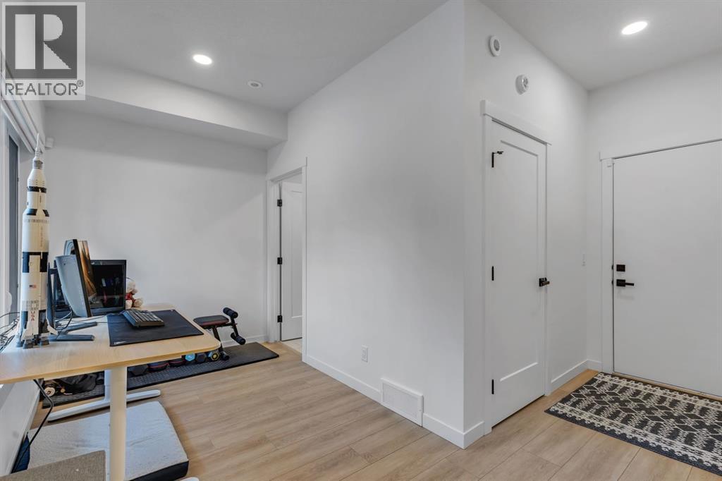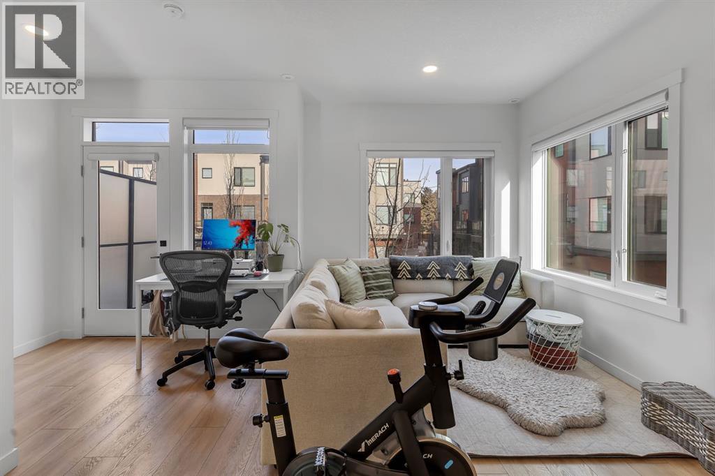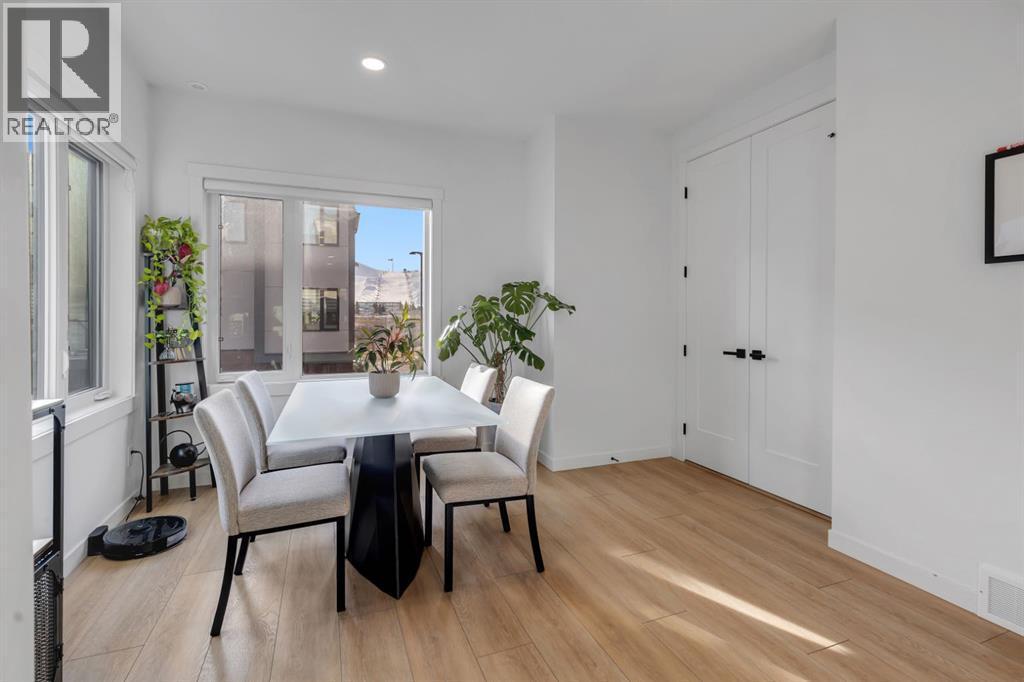 **Open House Sunday February 8th from 12:30-3:30pm** Welcome to the Amara Corner Lot Design Plan in Greenwich NW Calgary. This New York–inspired executive townhome offers 1,584 square feet of open-concept living in one of Calgary’s most desirable northwest communities. Featuring a 3-bedroom + den layout with 3.5 bathrooms, this thoughtfully designed home includes a double-wide garage with a single oversized door and a private driveway, maximizing both parking and storage. Professionally curated interior colour packages and an abundance of builder upgrades elevate the home throughout. Crafted with attention to detail, the residence showcases exceptional finishes paired with outstanding natural light. The north-facing frontage overlooks the community’s central courtyard and pathway system, while east-side and south-backing exposures flood the home with sunlight through expansive corner windows. Outdoor living is enhanced by a walkout exposed aggregate patio facing the courtyard and an elevated glass-panelled balcony, offering both privacy and scenic views. Inside, you’ll find luxury vinyl plank flooring on the main and lower levels, quartz countertops on all floors, 9-foot ceilings throughout, and stainless steel upgraded gourmet appliances, including a gas stove and chimney hood fan. High-efficiency features include triple-pane windows, a Navien on-demand tankless hot water system, and a heat recovery ventilator (HRV). This Amara corner plan is further enhanced by the Builder Show Home Package, adding a custom third full bathroom on the lower level, black interior door and bathroom accents, 8-foot solid interior passage doors, a full tile backsplash with custom grout design, and window coverings throughout. One of Landmark Homes’ most sought-after floor plans, this layout offers a functional galley kitchen with dedicated living and dining areas—perfect for entertaining and maximizing usable space. The exterior design channels classic New York brownstone style with Ja mes Hardie paneling, full brick accents, and stucco finishes for a contemporary, low-maintenance lifestyle. Ideally located just 18 minutes from downtown Calgary, 12 minutes to the University of Calgary and Foothills Hospital, under an hour to Banff and Canmore, and within walking distance to the new Calgary Farmers’ Market, this home offers unmatched convenience and community living. Book your showing today and discover what makes Greenwich NW an exceptional place to call home. (31584690)