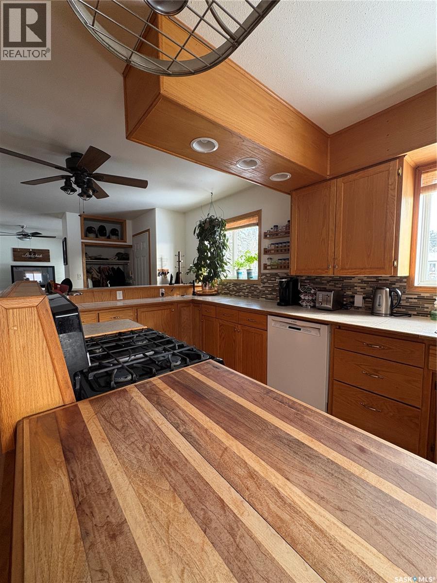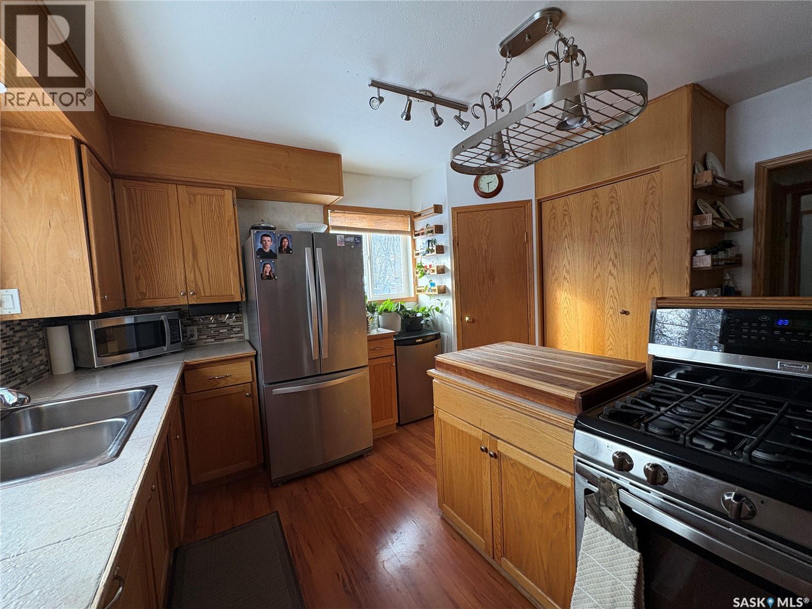 Welcome to Big River. This Home offers a nice large kitchen, with bar top for eating, lots of counter top, cupboards, pantry, and 2 stoves (one gas and one gas stove top) for the person who likes to bake and or can. Main floor offers 2 Bedroom, 4 piece bathroom, large back porch for freezers and or extra fridge. Basement is fully finished with family room, 3 bedrooms, 4 piece bathroom, laundry and cold storage. Beautifully landscaped yard, deck, perennials, partially fenced, raised garden beds, trees, fruit trees, saskatoon bushes, rhubarb, raspberries, haskap bushes. Ask for a list of details on work that has been completed in the home. This home originally had a suite in the basement and can easily be turned back into a legal suite. Call today for a personal tour. (29330060)