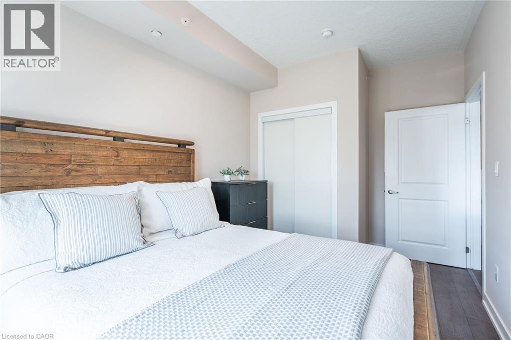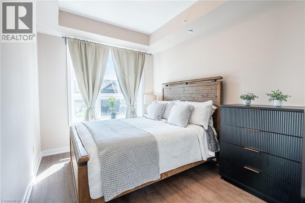 Discover boutique lakeside living in this stylish one-bedroom condo at the Waterfront Trails in Stoney Creek. Located in a charming four-storey building right on the lake, this freshly painted unit features newer wide plank flooring, a modern kitchen with stainless steel appliances and a breakfast bar. This unit features in-suite laundry and sliding doors that open to a private balcony. Enjoy the convenience of one owned underground parking space and one owned locker along with building amenities including a rooftop terrace with stunning lake views, an exercise room, bicycle storage and ample visitor parking! With a walking trail at your doorstep, easy beach access, quick access to the QEW and local amenities, this condo is a perfect opportunity for first-time buyers or investors seeking a turn-key property in a prime waterfront location. Don’t be TOO LATE*! *REG TM. RSA. (70104482)