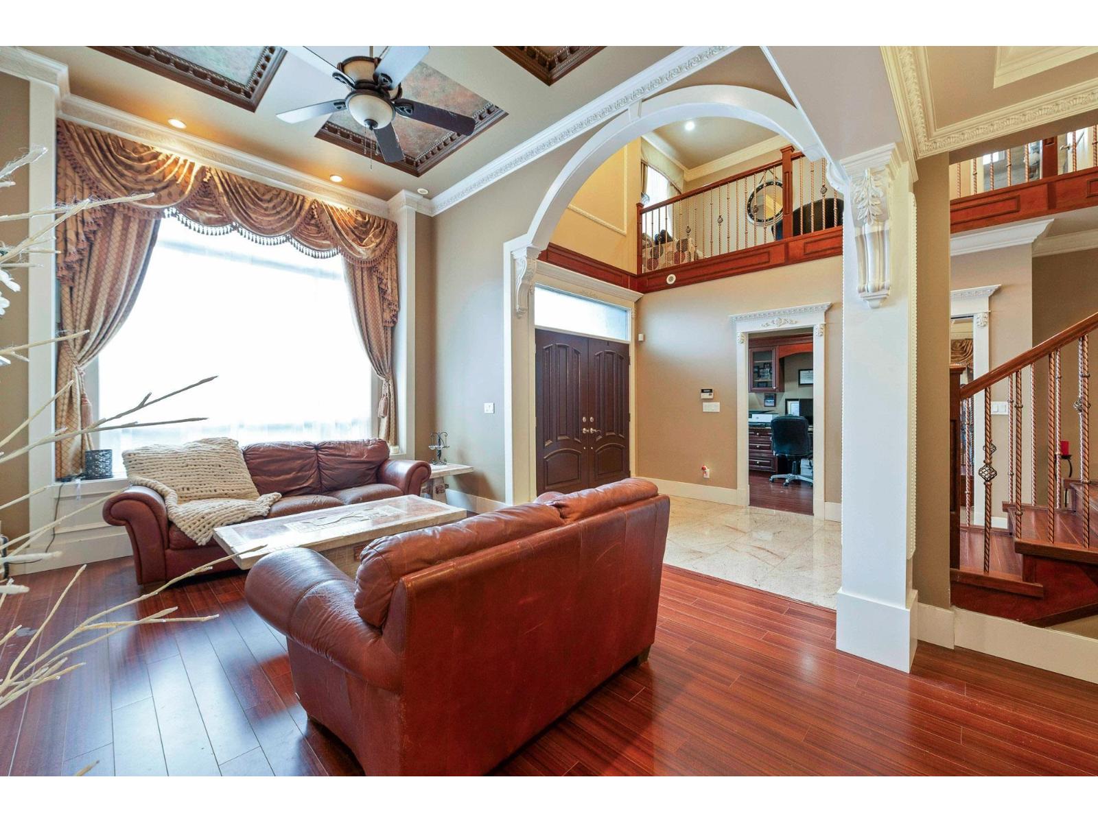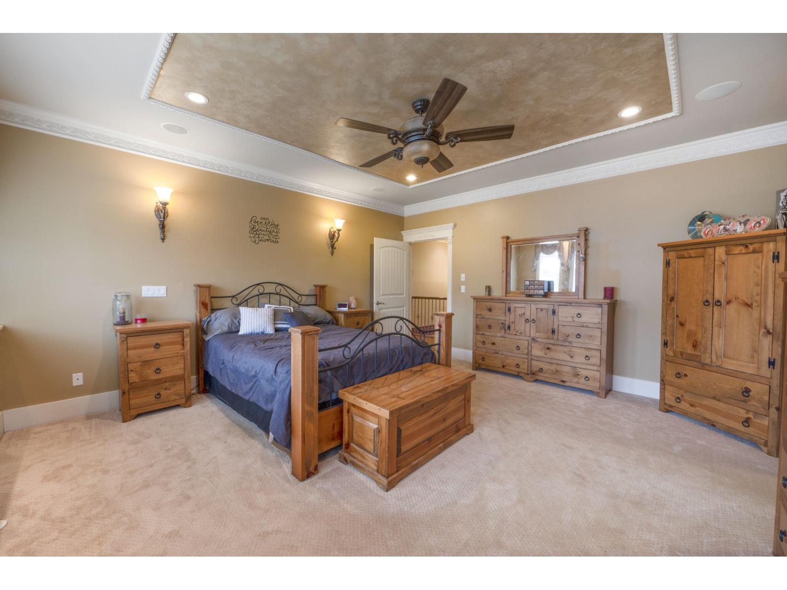 Don't miss this opportunity to own a beautiful 2-storey home offering 5 beds and 5 baths. The layout includes 2 spacious primary beds with w/i closets, plus a large bedrm on the main floor, ideal for guests/extended family. The home features high ceilings, crown moulding, & built-in speakers throughout, along with a dedicated office complete with custom built-in cabinetry. Additional highlights include a heat pump with A/C, a brand-new security system & thoughtful finishes throughout. Situated on a 1/4 lot, the property offers a serene creek & raised garden beds, perfect for outdoor enjoyment. Conveniently located on the Abbotsford-Aldergrove border, with Transit Road access and close proximity to the new Aldergrove Water Park and Arena. (32387319)