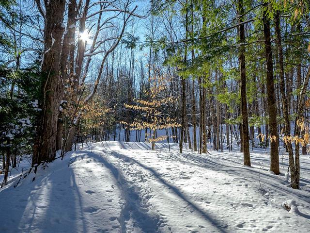 2.5-acre lot bordered on the north by the Sutton River, with over 400 m of shoreline. Set back from the road, a potential building site has been identified on a project plan, including a driveway and garage. Prepared by a surveyor, it complies with all environmental restrictions in force: riparian protection strips, wetlands, and escarpments. The imposing river, with its cascading waterfall, offers pools for swimming, while its shady banks populated with hemlock trees and its year-round murmur invite relaxation. Treat yourself to an active and rejuvenating lifestyle close to the village. (42859323)