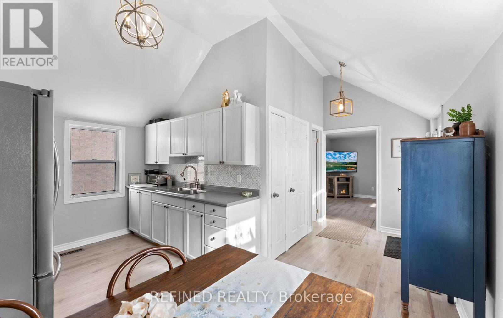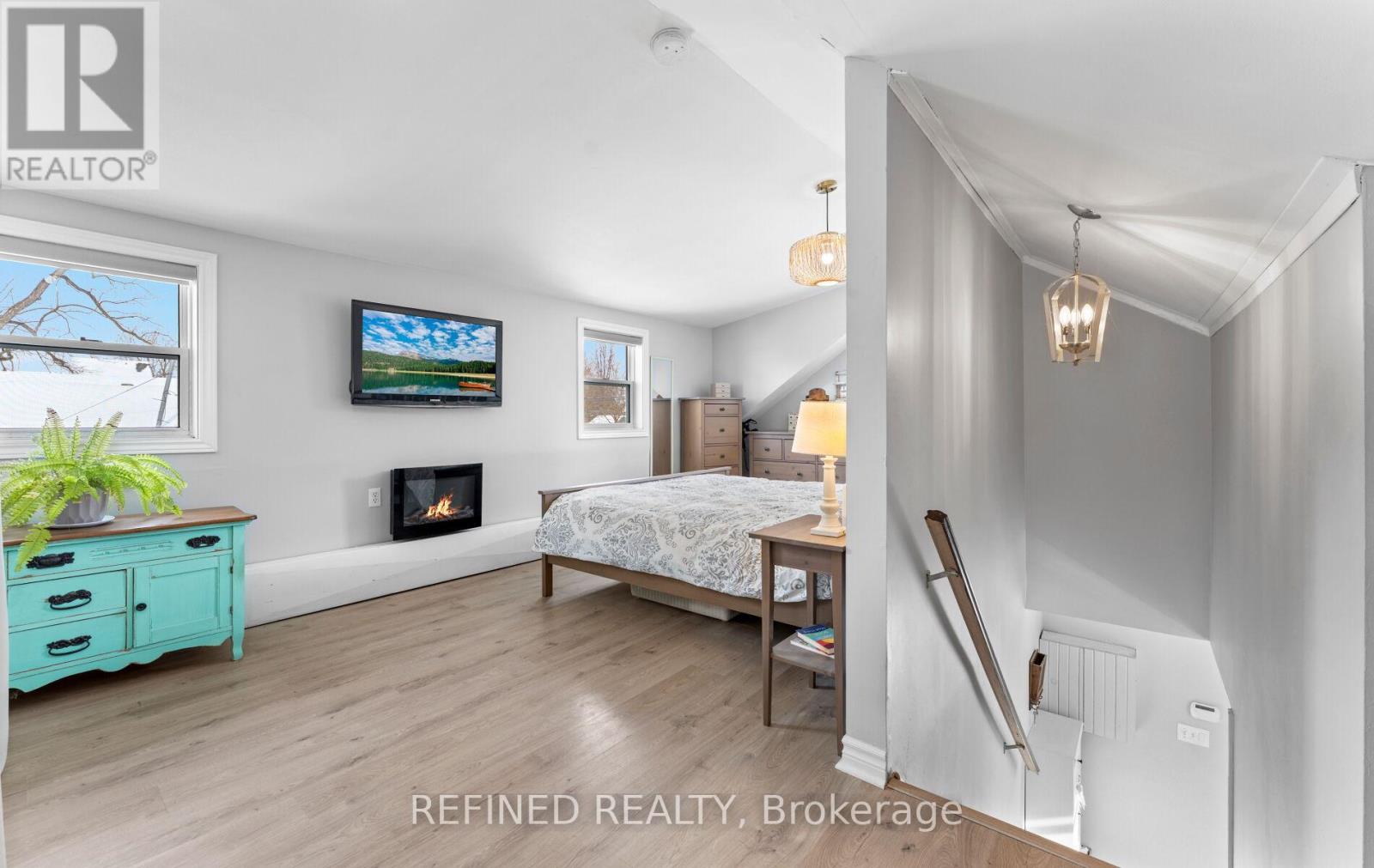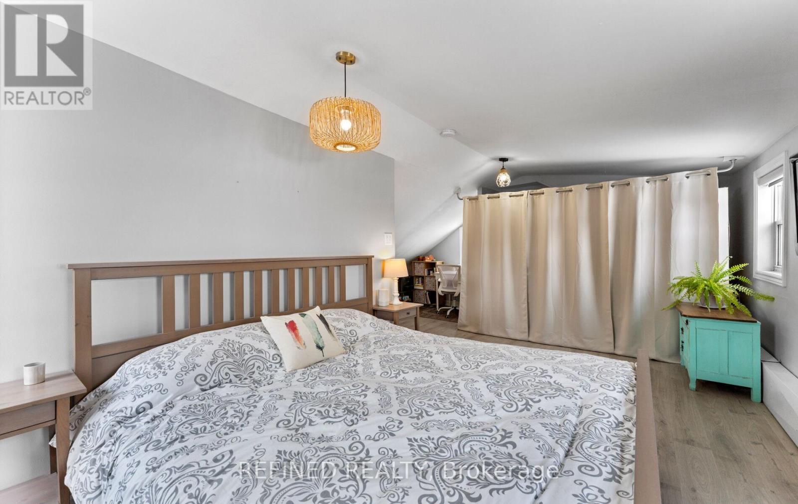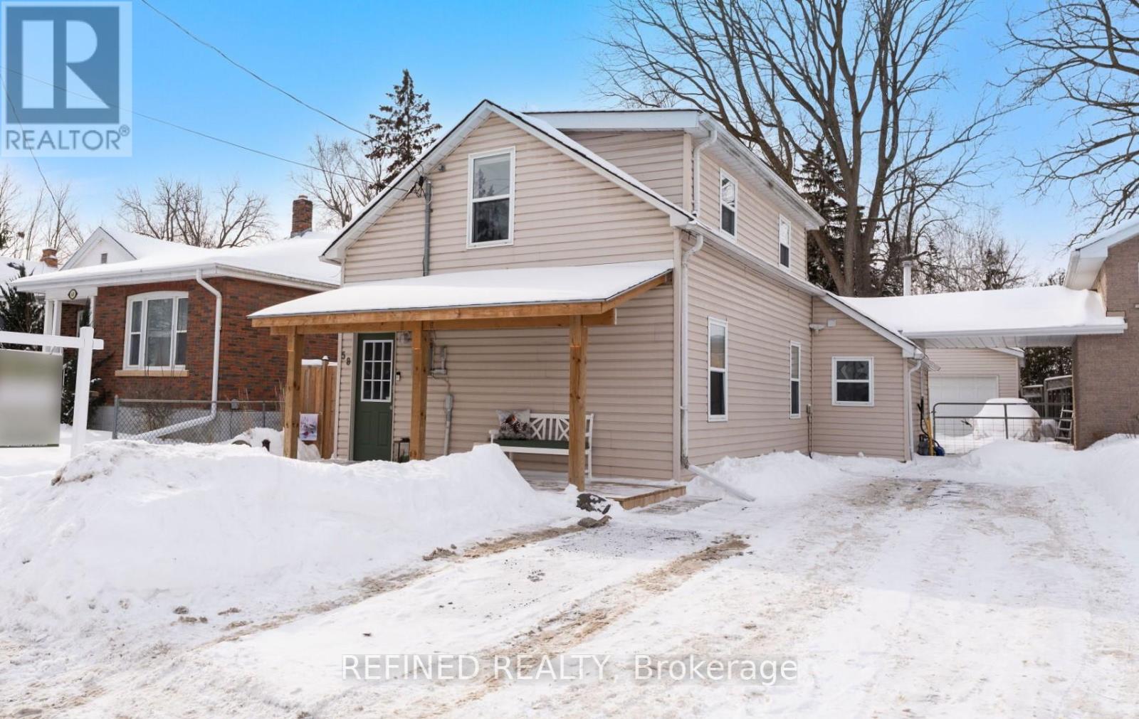 Check out this affordable opportunity to own a detached home in the centre of Alliston close to all amenities. This charming home sits on a large downtown lot with mature trees surrounding. The front of the home features a lovely newer wood porch built 2023 and the large driveway provides parking for 3-4 cars in front and more in back. The original century home has been expanded over the years and has had many updates, while still leaving room for your finishing touches! This unique home features vaulted ceilings in the kitchen and upper level and lots of windows for natural light all-around. There's a convenient bedroom on the main floor and a large, open-concept loft on the upper level, spacious enough for a king-sized bed suite, sitting area, office space - whatever you envision - while still leaving space for the convenient laundry area on that level. In the back you'll find a fabulous 24x24 ft detached garage for cars, a shop, work or play! This is a well-built, fully-insulated space complete with 100 amp hydro panel, two separate 240v outlets, smooth, painted concrete floor and a window. (It's currently split in half via wall separating garage space and 'mancave' but can quickly and easily be opened back up.) Take advantage of this market and snap up this great value of a tastefully-decorated home for a great price! (42045167)