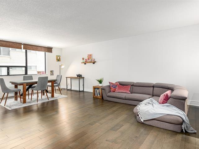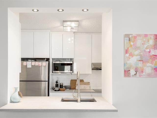 Ideally situated at the foot of the Mountain in sought after Golden Square Mile, this beautiful 1-bedroom condo offers over 890 sqft of livable space. The vast unit has undergone several renovations incl the kitchen and bathroom! It features a trendy European style kitchen boasting floor to ceiling cabinets overlooking the open concept area. Additional updates: high-end wood & ceramic flooring, lovely tiles, quartz counters & more! Great common areas include an elegant lobby with 24h doorman, a sauna, a pool, a gym... Steps from the best wining, dining & shopping in the city, McGill University and the natural splendor of the Mont-Royal! (48270300)