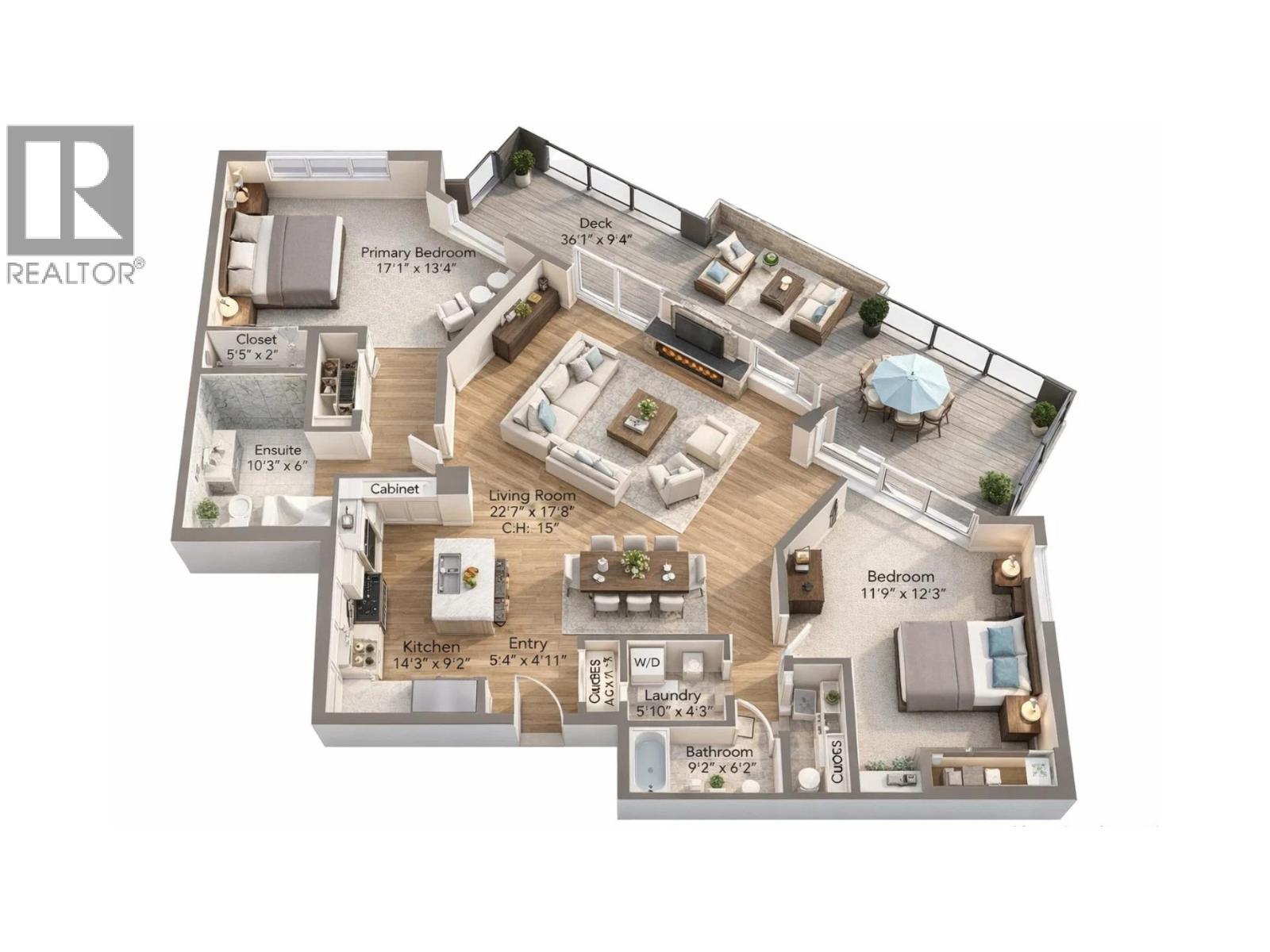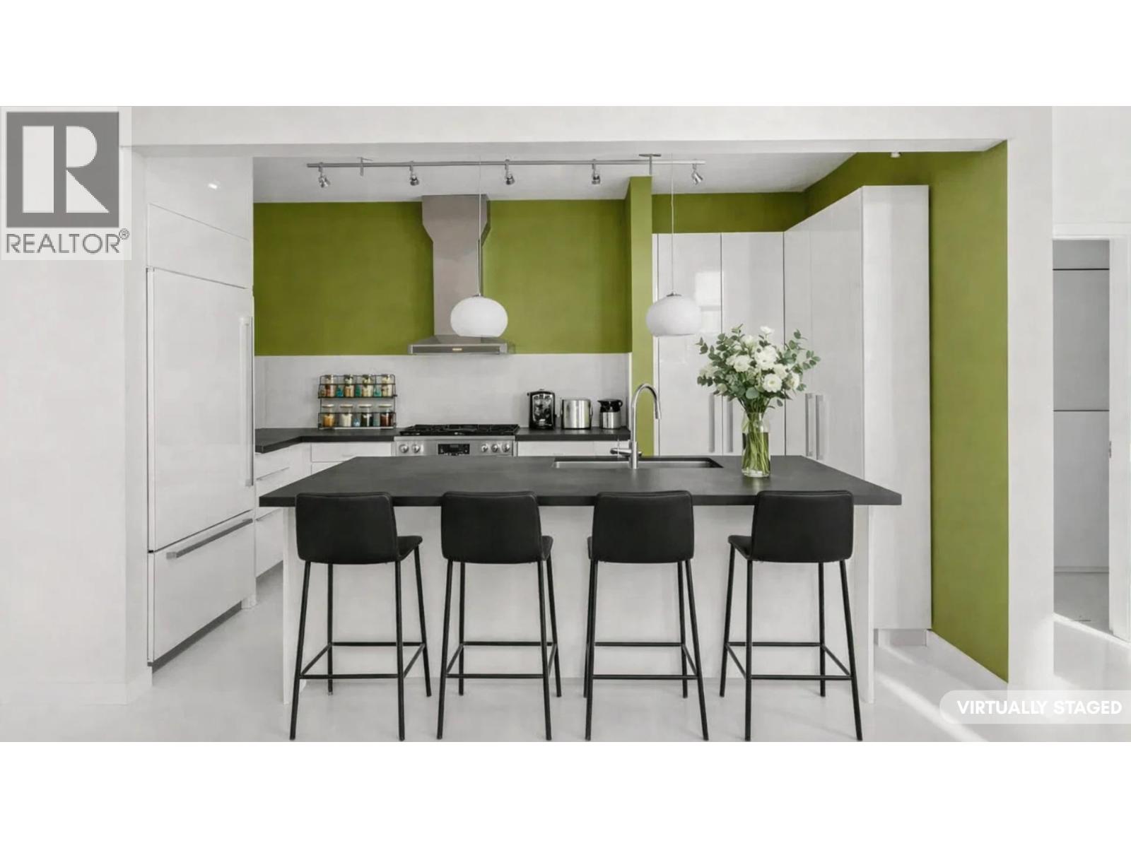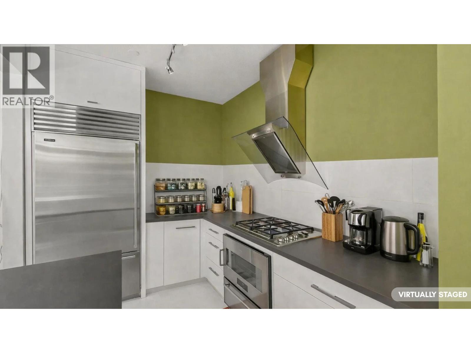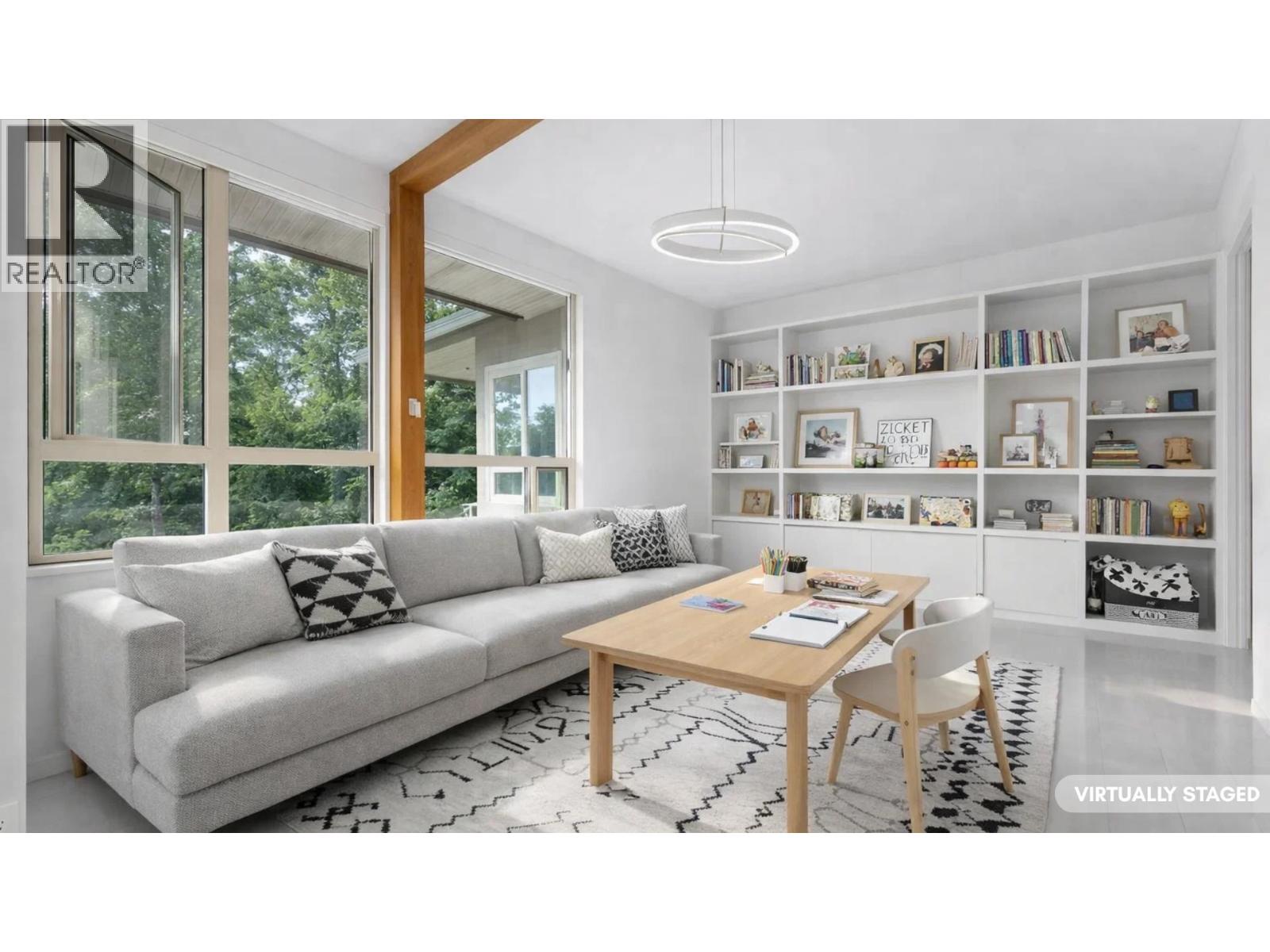 STUNNING OCEAN, CITY & TREETOP FOREST VIEW SOUTHWEST EXPOSED PENTHOUSE! Soaring vaulted ceilings, 2 storey windows accented by "centered " heat producing gas fireplace. The moment you walk in the door of this home you are drawn to the wrap around balcony with easy access from all rooms! Enjoy the ocean views in the Primary bedroom while still in bed. The 2nd bedroom is huge & faces southwest with Magical Ocean, Vancouver Skyline & Treetop views! The floorplan is open concept with separate bedrooms, kitchen has been fully renovated & offers a center island with sink for easy entertaining & adorned with high end appliances, floating shelves & accent lighting. If your looking for complete privacy, top floor with loads of light, air-conditioning, then your search is over! See it soon! (32389660)