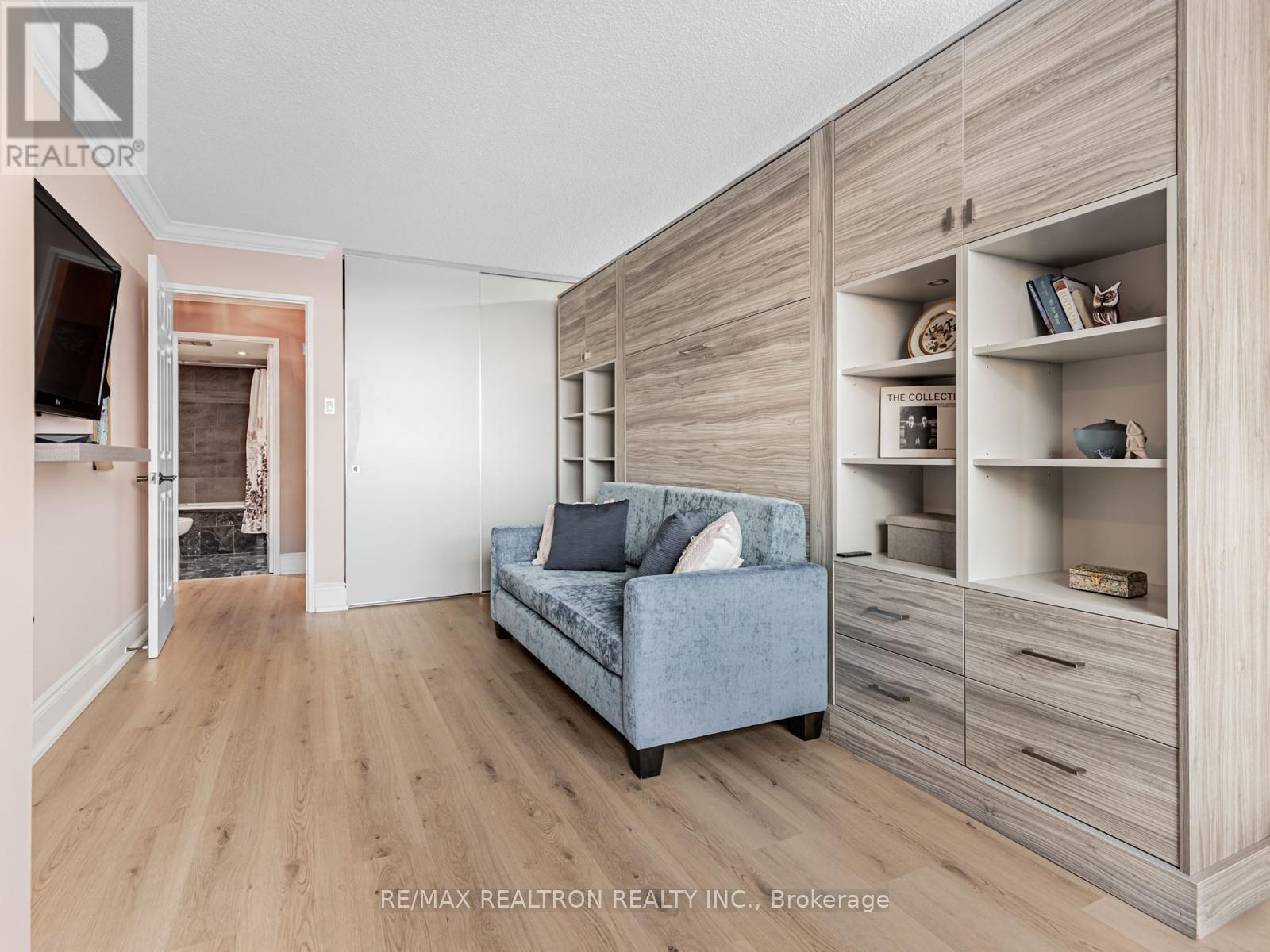No compromise in this stunning 1540sq. ft. unit, thoughtfully renovated (2023) & offering expansive SW unobstructed views through floor-to ceiling newer windows. Bright & sunny all day. Enjoy the marble foyer entry with double organized closet & in-suite locker. luxury vinyl flooring throughout. The Open Concept kitchen features are substantive. Breakfast Bar Island with storage & seating for 4 has Granite counters and loads of thoughtful storage. B/I buffet, trash/recycling pullout, spice rack, glass front accent cabinet, pantry, double sink, wall-mounted microwave and stainless-steel appliances, soft closing cabinets and drawers all accented with pot lights. The connected dining room also adjoins the sunken living room which features a stone fireplace w/electric insert. The layout is great to host a crowd. The 2nd bedroom has been combined with the office/den w/luxury built-ins, a light touch Murphy Bed that features an ingenious integrated sofa transitions the room for guests with a standard-mattress queen bed, no folding and no backaches! The Primary Retreat fits a king-size bed ++. Enjoy the Walk-Through oversized closet/dressing room, with vanity, sink & large linen closet. A separate bathroom with soaker tub, glass-walled shower and toilet completes the retreat. The main bath is a 4-piece with tub/shower and also hides a stacked standard-sized laundry closet with storage behind double doors. Beautiful décor throughout the common spaces in this award-winning building. It has upper & lower lobbies that whisper luxury and "home". Did I mention Valet Parking as part of the outstanding amenities and services( see Inclusions). Managed by Del, the vibrant built-in community is set in a neighbourhood that will satisfy your every need: Yonge/Sheppard Centre, restaurants, subway are steps away. Walk to the North York Public Library, Mel Lastman Sq. community centre pool, the Meridian Theatre and everything else you require for a great quality of life. (42046082)