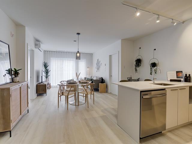 NEOLIA CITÉ VERTE - New condo project of concrete in Pincourt. Phase 1, condo #603, top floor south oriented with balcony. Includes 1 indoor parking space, 1 locker, Energy Star kitchen appliances, washer & dryer, quartz countertops, SPC flooring, ceramic backsplash, wall-mounted heat pump type air conditioning, medicine cabinet & linen closet. Steps from groceries, schools, transit, parks, and bike paths. Common areas: rooftop pool with BBQ, gym, co-working space with Wi-Fi, lounge, and an inner courtyard with a relaxation area. GST/QST must be added to the asking price (39849724)