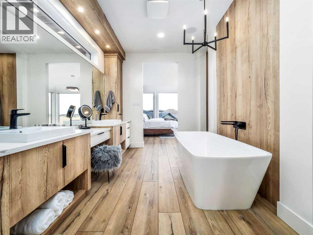 A rare opportunity to own the builder’s personal residence in one of Lethbridge’s most prestigious locations—Stonecrest Point, perched on the coulee’s edge in Riverstone. Every detail has been meticulously designed, resulting in nearly 5,000 sq. ft. of fully developed luxury with breathtaking coulee views, striking curb appeal, and extensive upgrades throughout. Inside, soaring 21’ ceilings, a dramatic floating solid-oak staircase with curved architectural detailing, and black powder-coated railings create a stunning first impression. Nine-foot ceilings span all three levels, complemented by 9” luxury vinyl plank flooring. The sunken living room features a beautiful two-sided gas fireplace with decorative hearth. The chef’s kitchen offers double islands, ceiling-height custom cabinetry, extensive drawer storage, appliance garage, integrated recycling, spice racks, and a large walk-in pantry. Premium Wolf and Sub-Zero appliances include a 48” gas cooktop with griddle, custom hood fan, double wall ovens, drawer microwave, and a side-by-side Sub-Zero fridge/freezer with water and ice. Two dishwashers on the main floor (plus a third in the basement bar), garburator, and thoughtful storage complete the space. An 8’ sliding glass door opens to a 14’ x 18’ concrete deck with frameless glass railing and built-in Napoleon BBQ, offering unobstructed coulee views. The main-floor office features 10’6” ceilings, built-in desks, ceiling beam detailing, and walk-in storage closet. A spacious mudroom provides custom built-ins, bench seating, shelving, and additional storage. The oversized heated garage includes a 27’ x 34’ main bay plus a workshop, epoxy floors, commercial overhead door, side-mount opener, hot and cold taps, floor drain, sink, and custom dog wash. The fully developed basement is an entertainer’s dream, showcasing a custom bar, ice maker, commercial bar fridge, and microwave. A commercial overhead pass-through door opens to an enclosed patio with electric screen, ra diant heat, gas fire table, and Hot Springs hot tub for year-round enjoyment. This level also offers a bedroom with walk-in closet, a full bathroom with custom tile shower, a large living area, and a private glass-walled gym. Upstairs, a bonus room with floor-to-ceiling windows captures incredible coulee views. Bedrooms feature walk-in closets, blackout blinds, and built-in bed bases. Two bedrooms share a Jack and Jill bathroom with frameless glass shower. The primary retreat is exceptional, offering continued views and a spa-inspired ensuite with a massive custom tile shower with dual showerheads, makeup vanity, water closet, and a walk-through closet connecting to the laundry room. The laundry room includes pull-down drying racks, steam dryer, sink, and generous counter space. The exterior is equally impressive with composite siding, synthetic turf, drip irrigation, raised garden beds, stamped concrete driveway, and so much more. A statement home in an iconic location - luxury living without compromise. (31587455)