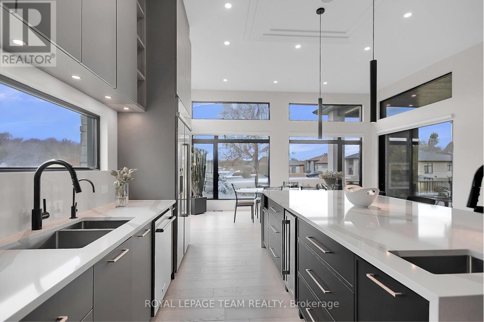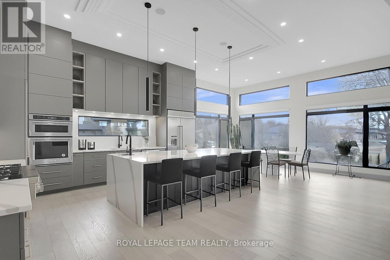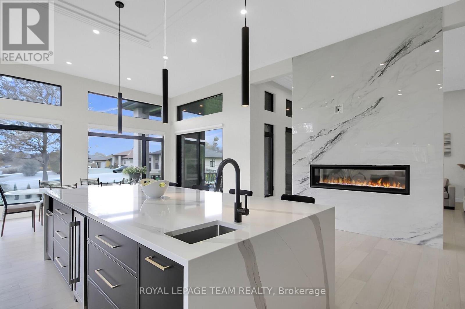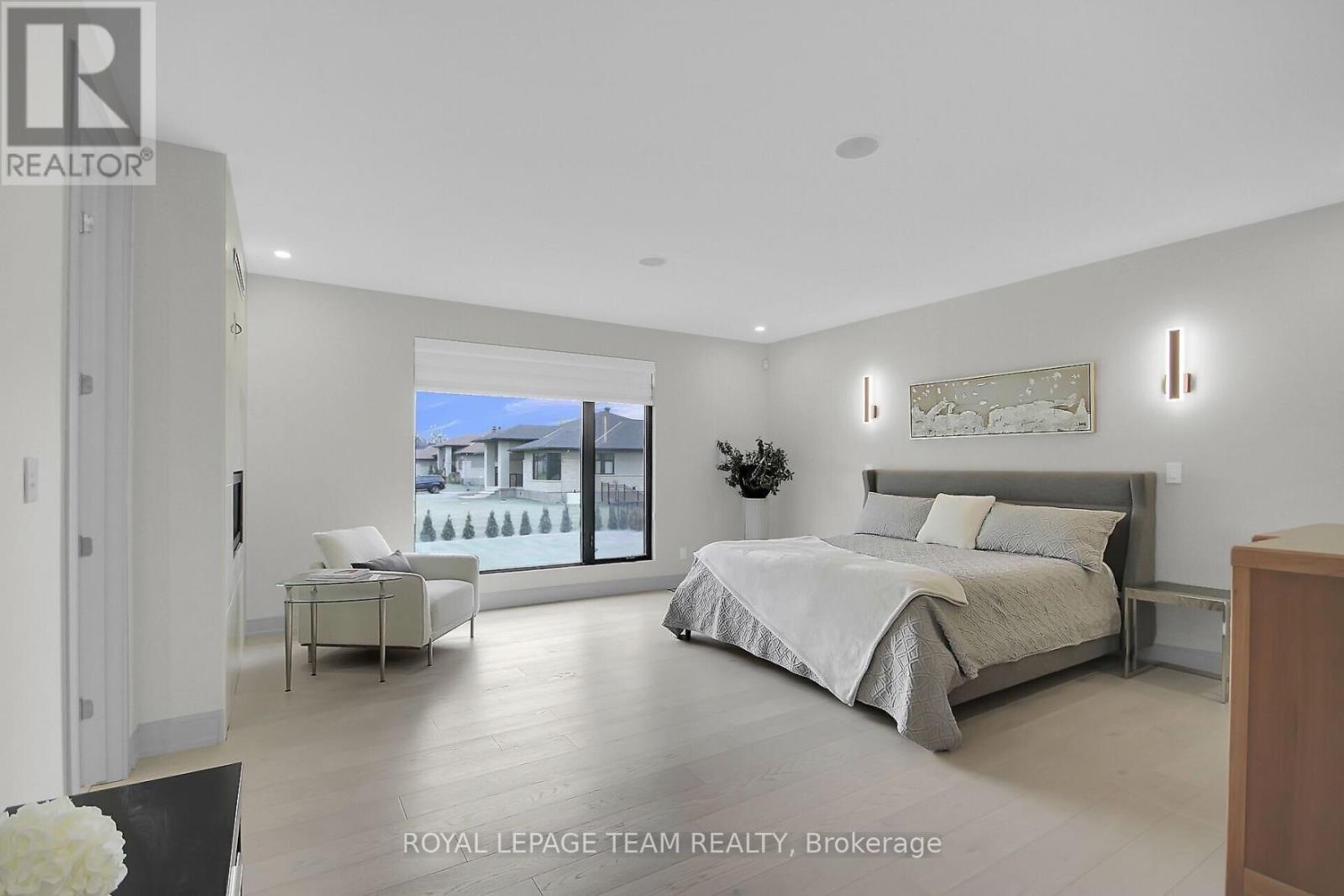 This expansive custom-built bungalow offers 6 bedrooms and 5 bathrooms, showcasing elegant wide plank oak hardwood flooring, oversized windows, and exquisite craftsmanship throughout. Designed with modern living in mind, the open-concept layout welcomes you through a stylish foyer into a grand living room that seamlessly extends to a covered veranda, complete with a cozy wood-burning fireplace. The chef-inspired kitchen is a true centrepiece, featuring a stunning waterfall quartz island with generous seating, quartz backsplash, gas cooktop, and a bright breakfast nook perfectly complemented by a separate formal dining room for more refined gatherings.The luxurious primary suite is a private retreat, boasting a spacious walk-in closet with custom vanity, a 5-piece ensuite with double sinks, a glass-enclosed shower, freestanding soaker tub, and a gas fireplace for added comfort. Three additional bedrooms are located on the main floor, two of which offer private en-suites. The fully finished lower level features heated floors throughout, three large bedrooms, a full bathroom, and a vast recreational space with endless potential for entertainment or relaxation. Additional highlights include a heated 3-car attached garage with soaring 20-ft ceilings and a fully integrated smart home system with wireless control and state-of-the-art 5-zone wireless speakers. Please note that lower level rooms have been virtually staged. (42048762)