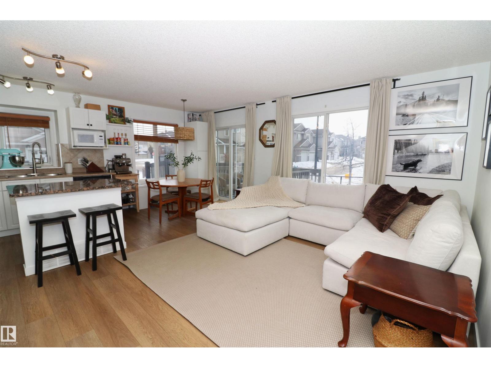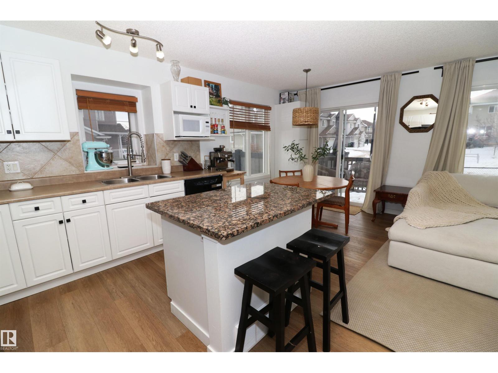 Gorgeous updated half duplex backing green space in Magrath! This beautiful property has so much going for it - new vinyl plank floors main floor & laminate in the basement, bright white paint showing off the natural light of the many windows throughout. The open concept kitchen has white cabinets with modern black hardware, there is a granite island for extra work space & friends to cheers. The large living space isn't limited by a fireplace, so big furniture can fill it out in your layout choice. The dining nook sits in front of the patio door which leads to the deck, south facing yard & view of the greenspace. Upstairs are 2 huge bedrooms - the 16x12 primary with an ensuite and walk-in closet & the 2nd bedroom which is 15x11 has its own walk-in closet as well. There is a 2nd full bath upstairs as well. The finished basement is a great rec space and houses laundry & utilties as well. Single garage attached & driveway space for a 2nd. Great location surrounded by grocery, restaurants, quick to Henday LRT (33779447)