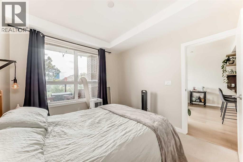 This well-maintained 1-bedroom apartment offers a bright, open, and functional layout designed for modern living. The gourmet kitchen features stainless steel appliances including a built-in oven and gas cooktop, quartz countertops, under-cabinet lighting, a sleek backsplash, and ample cabinetry with a large pantry. The living area boasts 9’ ceilings and floor-to-ceiling windows that fill the space with natural light and capture city views. The spacious queen-size bedroom includes a walk-through closet leading to the ensuite. Enjoy your private east-facing balcony with a BBQ gas hookup overlooking a quiet street. Building amenities include two fitness centers, a bike storage room, car wash bay, dog wash station, visitor parking, and a beautifully landscaped courtyard with seating areas. This unit comes complete with a titled underground parking stall, an assigned storage locker, in-suite laundry, and extra storage space. Located within walking distance to restaurants, cafés, shops, the downtown core, public transit, and river pathways—this home is perfect for professionals seeking a convenient urban lifestyle! (31591814)