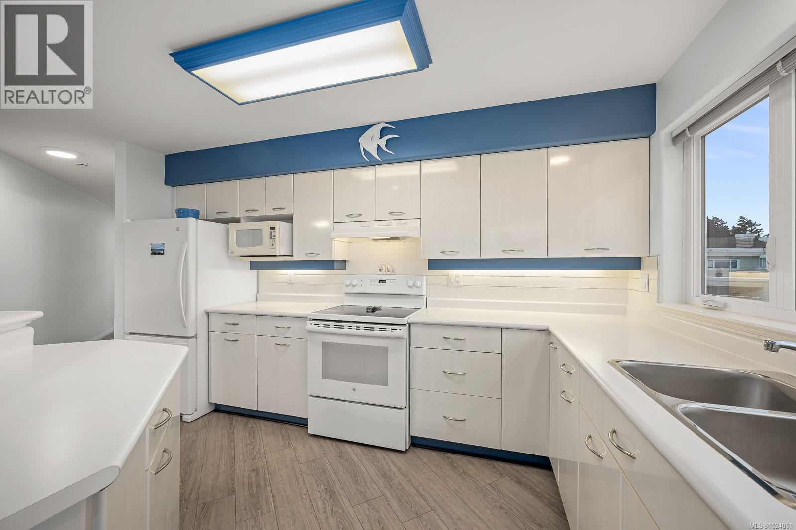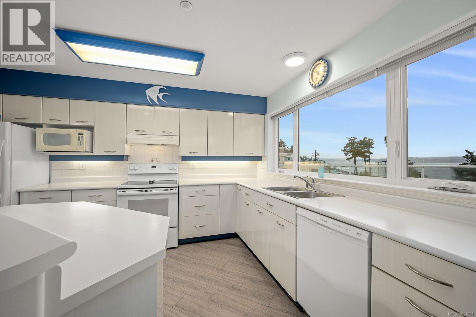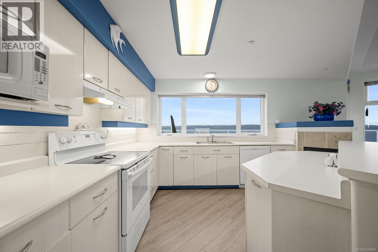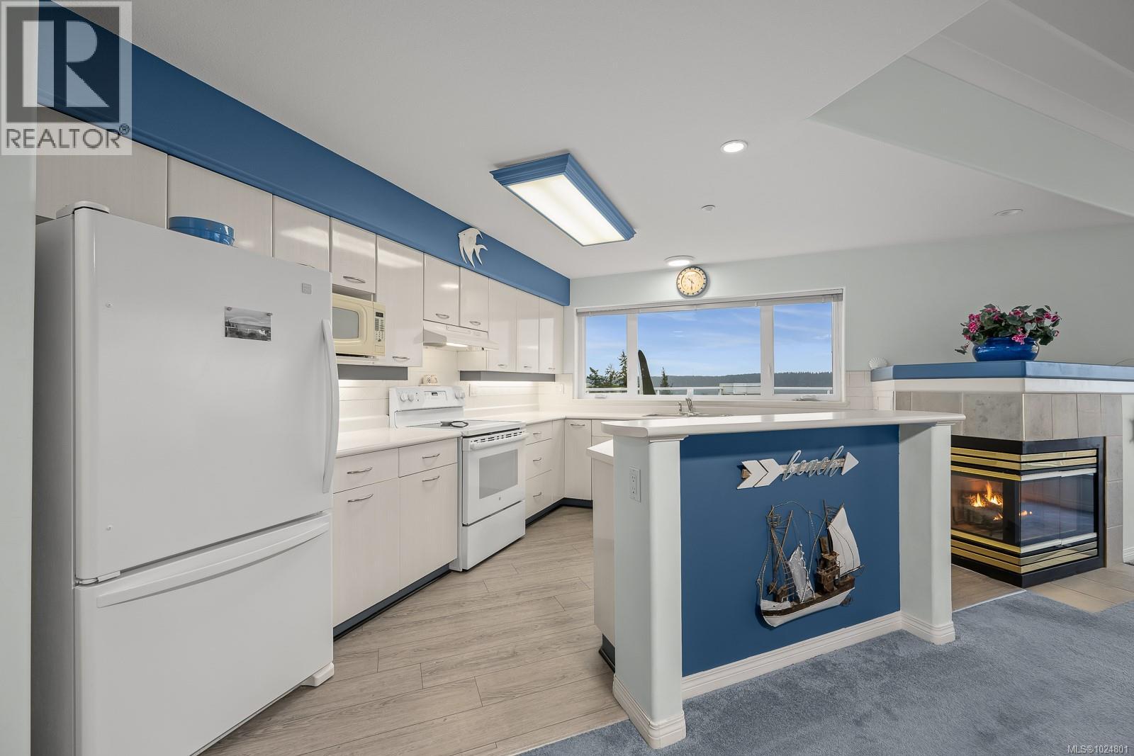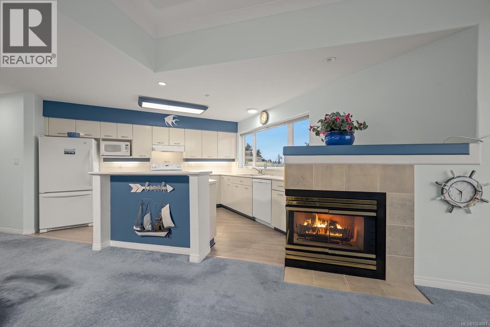 Welcome to Unit 404 at Silversea, a top-floor waterfront condo offering stunning ocean views and low-maintenance Island living. Take in the views across Discovery Passage toward Quadra Island and the Coast Mountains, with nature framed inside every window. This bright and thoughtfully designed home features three rooms: a primary bedroom, second bedroom, and a separate den/office, along with two full bathrooms. Vaulted ceilings in the primary bedroom create a bright, open feel, while the kitchen flows into the living area and view, complete with a gas fireplace. The defining feature of this home is the 700sqft wrap-around balcony, offering outdoor living space with room for entertaining and container gardening, plus an outdoor water faucet. Features include two underground parking stalls, a storage locker, no age restrictions, and a pet-friendly building. Amenities include a fitness room, guest suite, bike storage, three elevators, and convenient access via a dedicated turning lane. (30335261)
