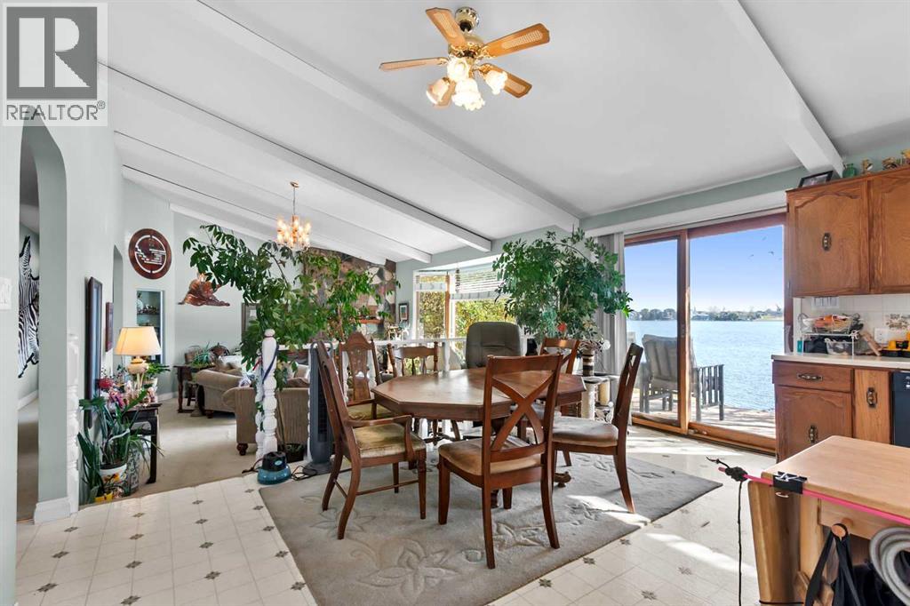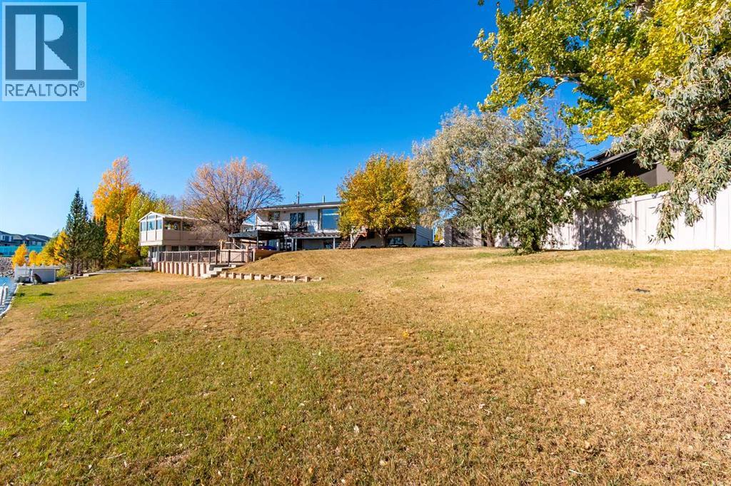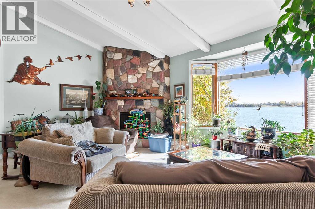 Dream Location! This beautiful half acre lot is located at the end of this scenic cul-de-sac on West Chestermere Drive. Nestled beside the nature reserve and walking paths that will lead you to Summer water sports and fishing, this is the perfect spot to create your own Lakefront Oasis. Walk-out bungalow on an extra large private lot, with many excellent features. Built in 1976, this home has ample character and all the potential possible. With three bedrooms upstairs and two bedrooms down, here is all the room you need. Enjoy the open concept upper floor plan, big bright windows with natural lighting and an incredible view of the lake from your dinning room table. Four bathrooms, including a deep soaker tub. Two wood burning fireplaces in beautiful brick surround. A large family room and spacious rec room, with pool table included. The 32'x16' vinyl sided Boat House has been renovated and wired for power, ready for your man cave, with above storage. Relax in the fully functional hot tub with a perfect view of the sunset on the lake, or take your boat out from one of the two boat lifts. The spacious private backyard has it's own functional underground sprinkler system. The 30x30 Garage features a workbench and mechanic pit, and front access to the main drive. In the front, a huge concrete parking pad, suitable for boats and RV's alike. Come and see all the budding possibilities this property holds! (31595437)
