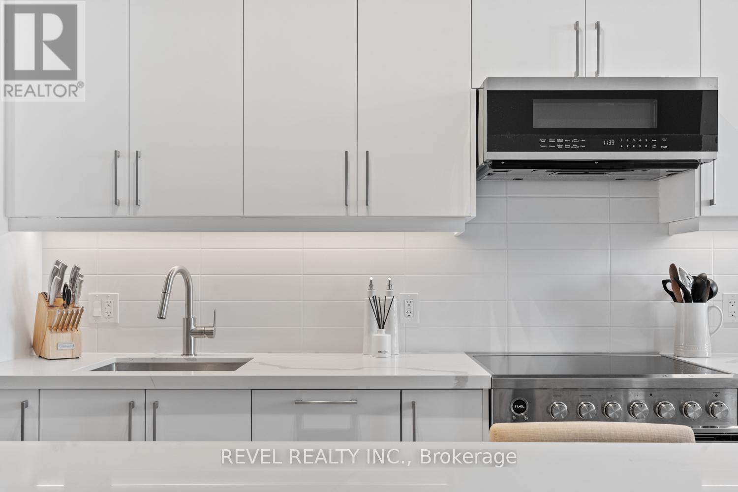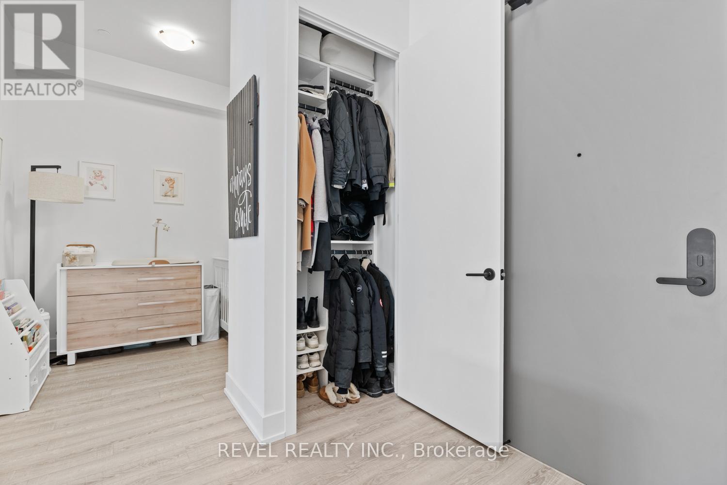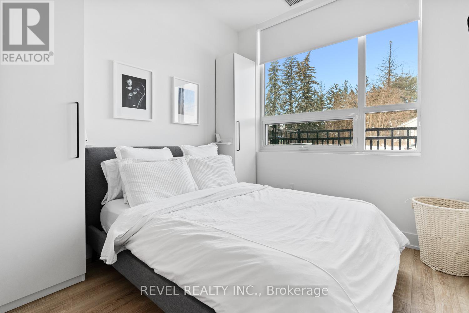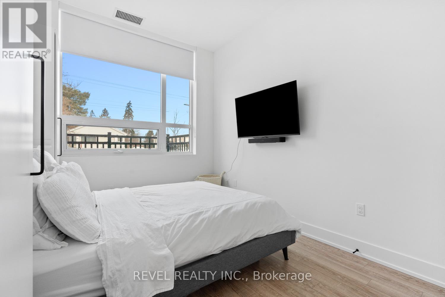 Welcome to Suite 123, a beautifully designed 667 sq. ft. unit + private outdoor patio. A residence that blends modern comfort with upscale, custom finishes. Featuring 10-foot ceilings and floor-to-ceiling windows in the living area, this home is filled with natural light and offers an airy, sophisticated atmosphere.The open-concept kitchen has been fully upgraded, showcasing custom cabinetry extended to the ceiling, integrated appliances with full size stove and microwave , and a stunning custom quartz countertop island with seating for up to 10-perfect for entertaining, hosting, or everyday living. Thoughtfully designed custom closets throughout elevate both function and style. A spacious den offers versatility as a home office or guest space, while two full bathrooms provide added convenience and privacy. Step outside from your private ground floor entrance to your walk-out terrace, complete with a dedicated gas line for bbq and water bib, creating an ideal setting for outdoor dining, entertaining, or relaxing evenings at home. Residents of King Terraces enjoy access to a curated collection of amenities, including a resort-style pool, sauna, steam room, rooftop terrace, fitness centre, elegant party lounge, and 24-hour concierge service. Suite 123 is where luxury design meets everyday ease-a rare ground-floor retreat with exceptional upgrades and seamless indoor-outdoor living. (42061921)