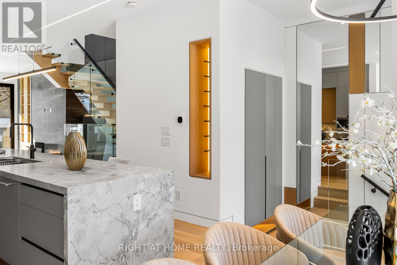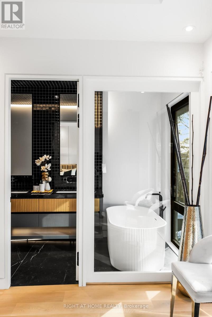 Welcome to 74B Rathnelly Ave - a brand-new, never-lived-in, custom-built luxury home in the prestigious Republic of Rathnelly one of Toronto's most in-demand neighbourhoods, minutes to Yorkville and close to some of the best private and public schools in Canada. A truly rare offering with exceptional design, craftsmanship, and high-end finishes throughout.Featuring German-imported Schüco aluminum windows and doors with triple-glazed glass, wide-plank white oak flooring, and a sleek trimless modern design with drywall-groove detailing. Impeccable interior detailing includes custom wall paneling and millwork, a statement mono-beam staircase, glass railings throughout, and upgraded strip lighting/fixtures.Chef's kitchen with custom-painted cabinetry, premium Sub-Zero & Wolf appliances, and natural stone countertops including Super White. Natural stone carries throughout the home (vanities, basement bar, fireplace), highlighted by a dramatic triple-sided marquee fireplace. Spa-inspired bathrooms feature CariMali Italian fixtures and wall-hung Duravit toilets, plus Italian tile and slab finishes with a strong focus on the Italian-slab basement.Enjoy a two-level, double-height heated basement with large rec room and bar area. Exterior impresses with high-quality linear brick wrapping the sides/rear/walkout, extensive interlock (including interlock driveway), and a standout snow-melt heated driveway, front porch, and rear walkout. Entertain on the composite deck and enjoy a large backyard rarely found in the area. Integrated heated garage (extremely rare in the neighbourhood), two furnaces + two A/C systems, high-efficiency spray-foam insulation, and smart security/speaker system. (42062673)