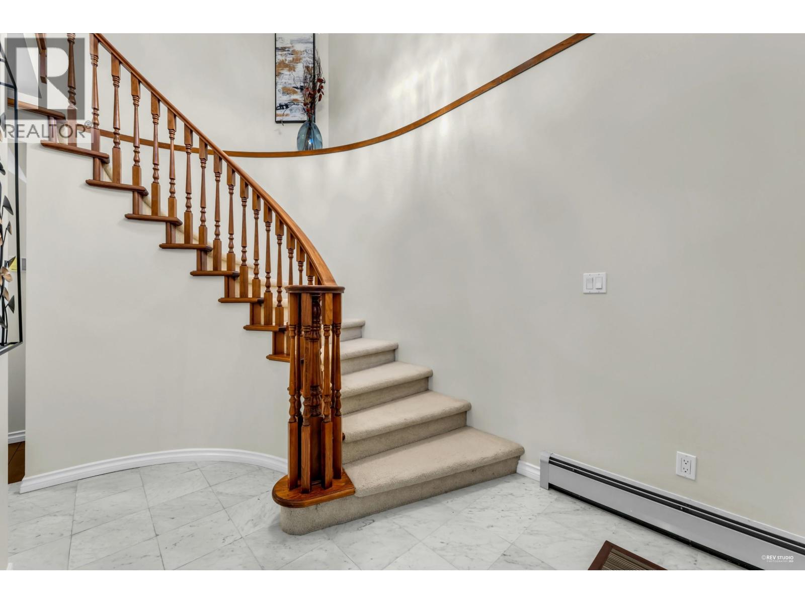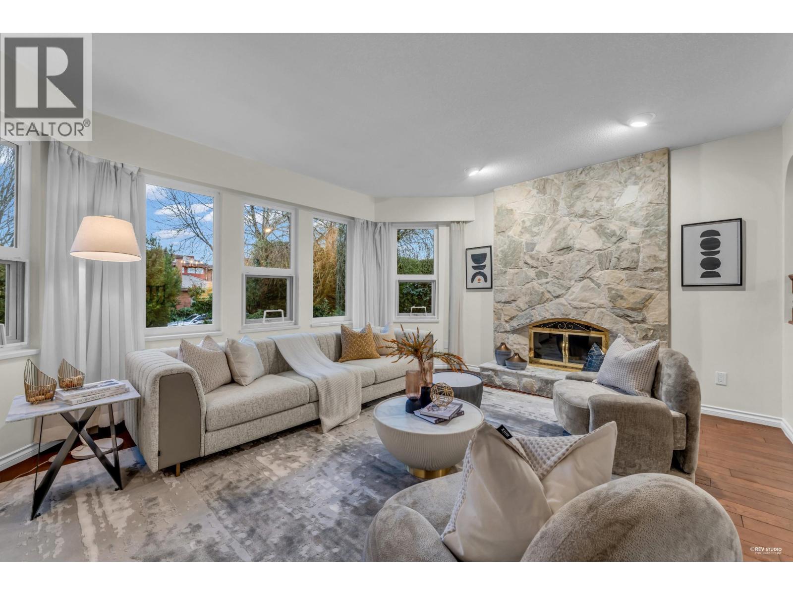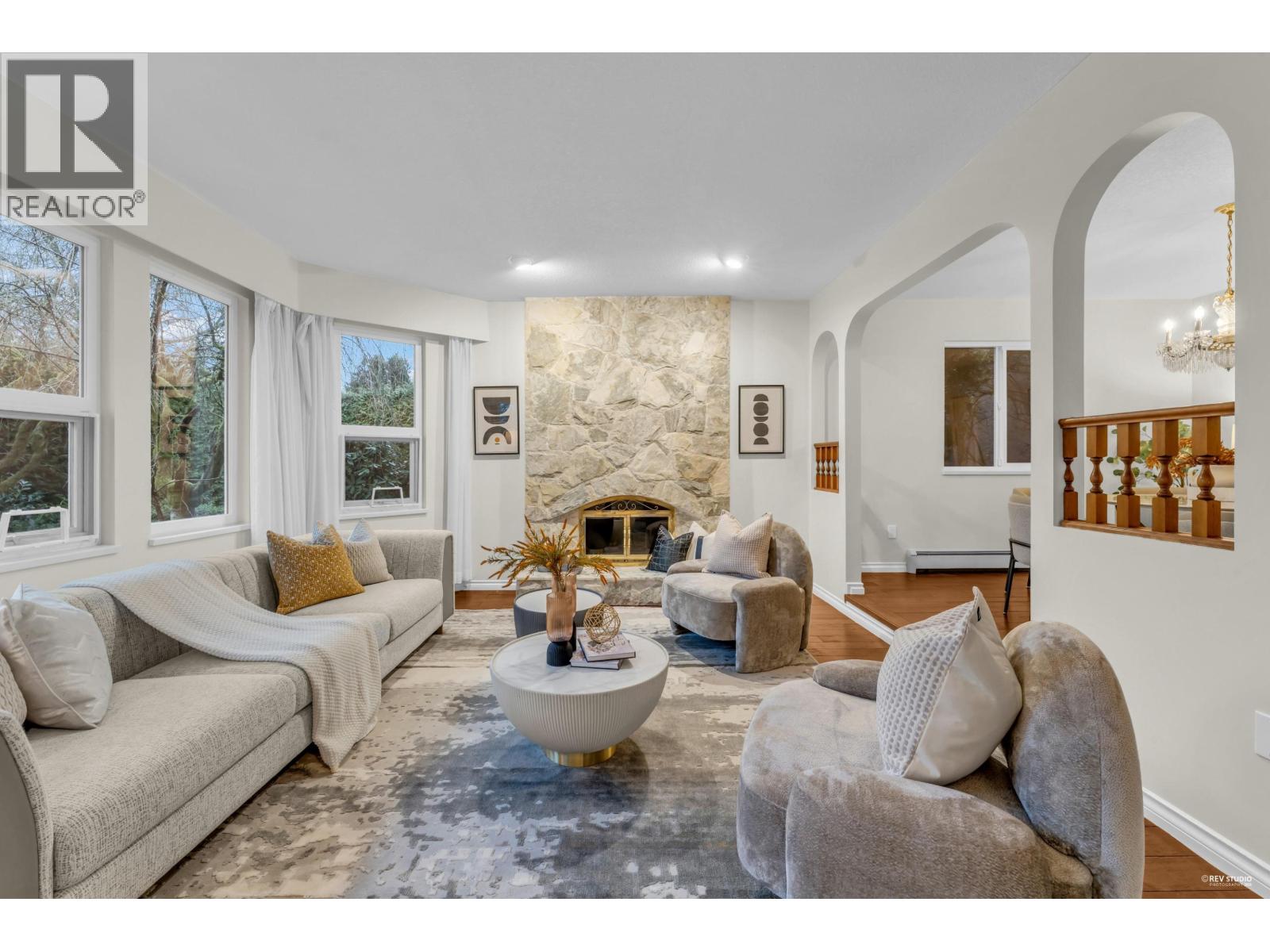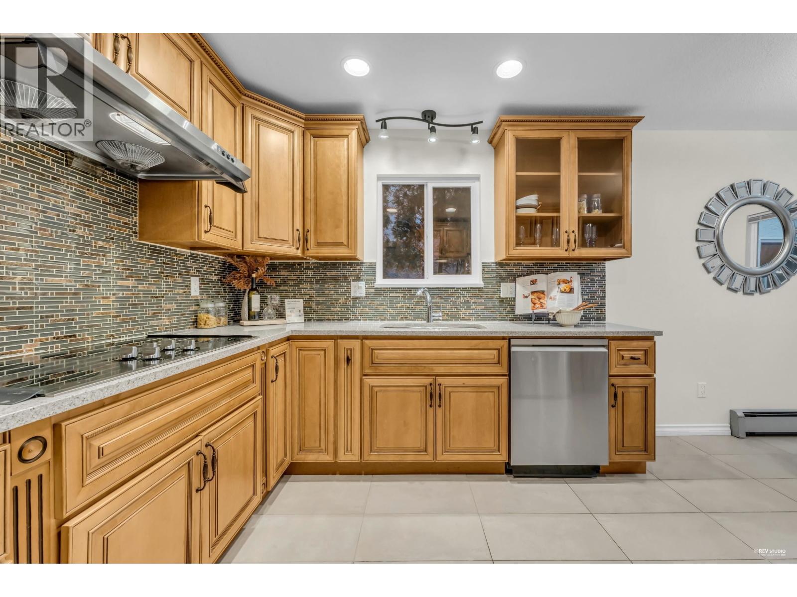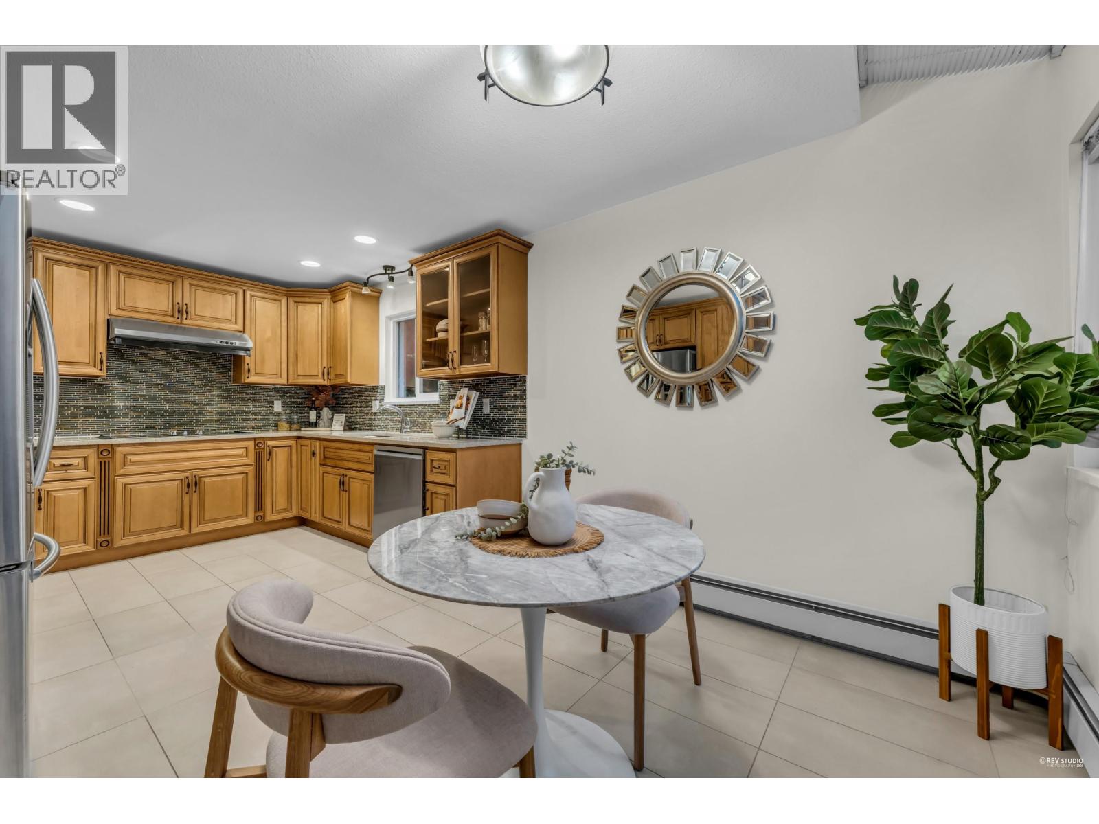 Sweeping view from the rooftop. This well-kept four-bdrm family home on two levels offers a practical layout. The main floor features a welcoming living area with a curved staircase and elegant chandelier, a dedicated dining space, and a spacious kitchen with an eating area. A cozy family room with fireplace completes the level. One bedroom on the main floor, together with a full bathroom, provides excellent flexibility, or use as a home office. Upstairs, the primary bedroom includes a walk-in closet and ensuite, complemented by two additional bedrooms and a full bathroom. Multiple outdoor decks add valuable outdoor living space, including a rooftop deck for relaxation and entertaining.Located within a BC Top School catchment, including Kitchener Elementary and Lord Byng Secondary. (32398978)