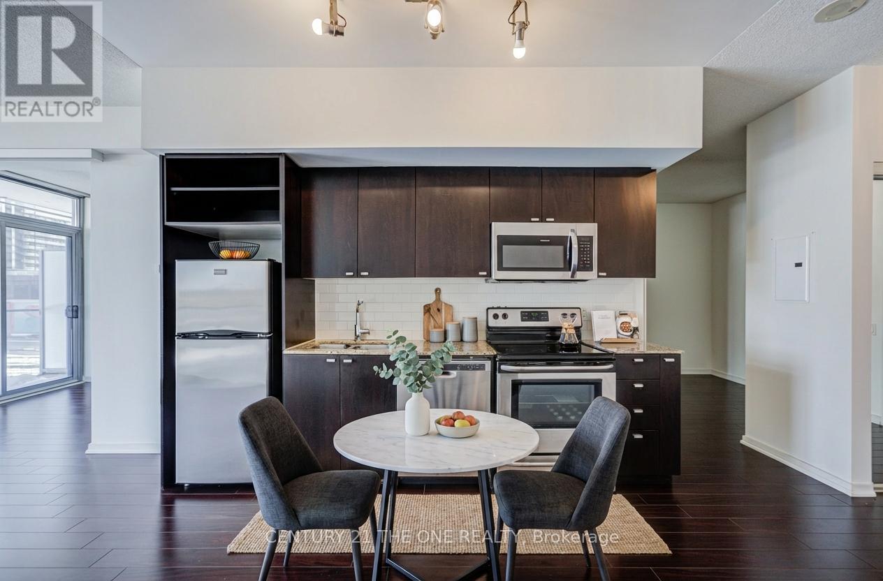 This well-designed 1 bedroom plus den suite offers 706 sq.ft. of interior living space complemented by a 93 sq.ft. private balcony, delivering a functional and comfortable layout ideal for modern city living. The versatile den is perfect for a home office, study, guest room, or even an extra bedroom, offering excellent flexibility. The open-concept living and dining area is bright and inviting, seamlessly connected to a contemporary kitchen-ideal for everyday living, entertaining, or working from home. Large windows provide abundant natural light throughout, creating a warm and welcoming atmosphere. Enjoy amazing building amenities including concierge service, indoor and outdoor pools, a fully equipped exercise room, tennis court, and ample visitor parking. Ideally located close to transit, waterfront trails, parks, shopping, dining, and major highways, this home offers an exceptional blend of lifestyle, convenience, and value in a prime Toronto location. (42066270)