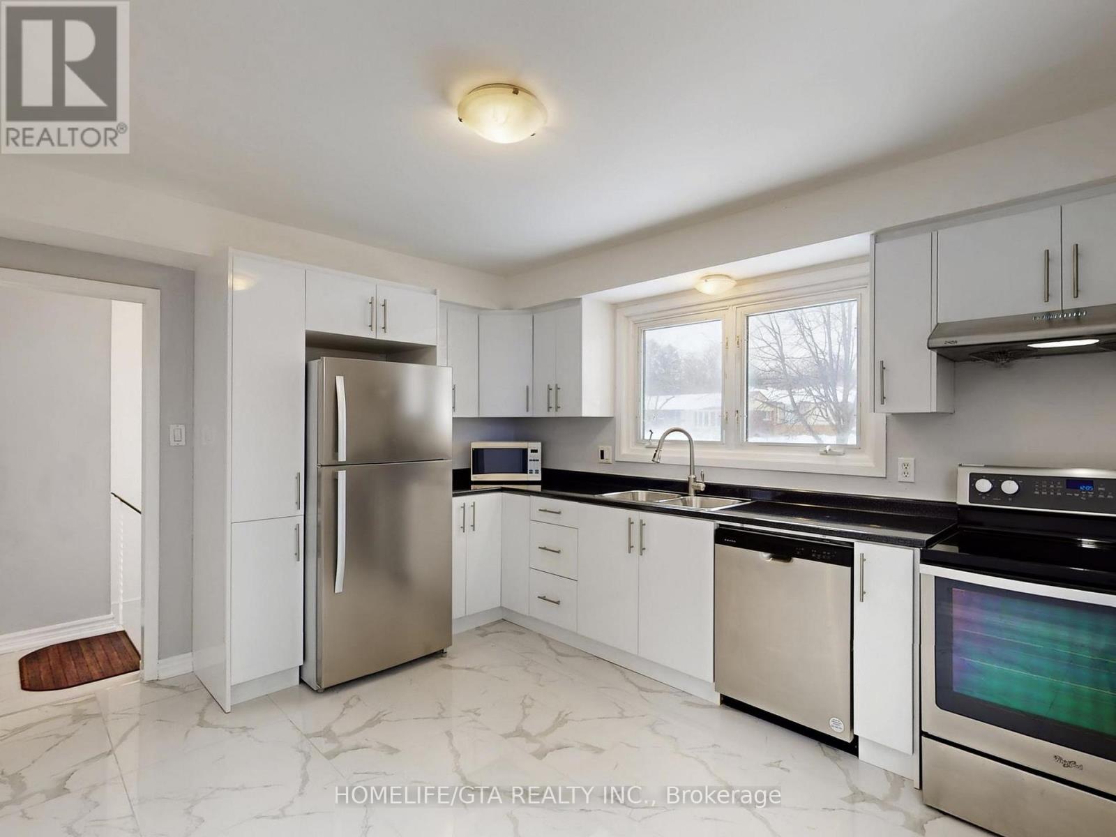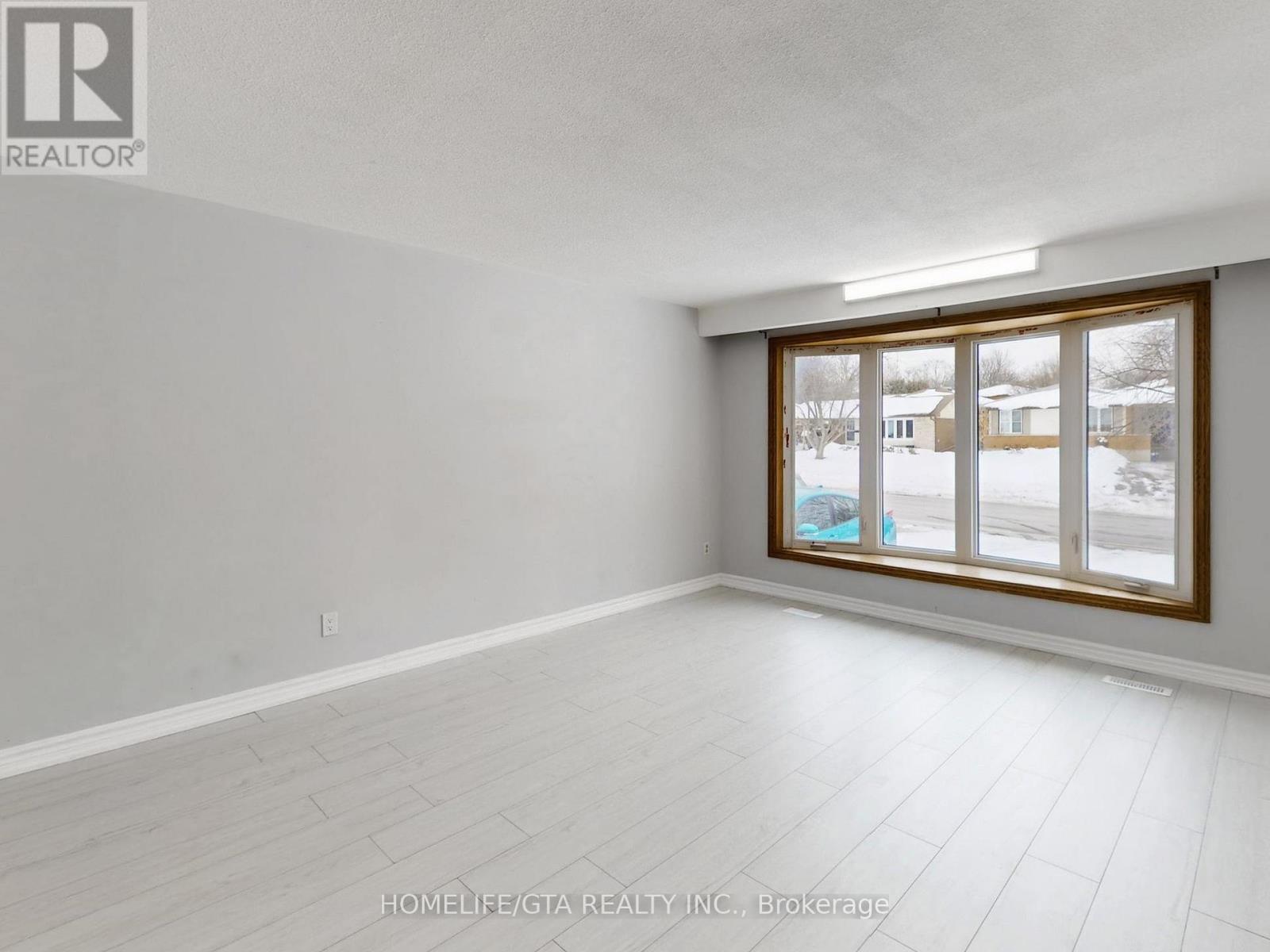 *This is Newly Renovated Bungalow 1059 sq ft backs on to a PARK* For Lease Immediately* This is for main Floor with 3 Bedrooms, 1 Bathroom, Living and Dining and a Shared Backyard and Shared Common Laundry Room in basement* Brand New Modern kitchen, Brand new waterproof laminate floor throughout, with extra plywood floor screwed down for no squeaks, Brand New Paint, Brand New Porcelain Tiles in Kitchen, Bathroom and Foyer* Parking for up to 3 Cars at no extra cost*Photos will be coming in a week and beat the rush and come and see before photos are out. Tenant to pay 65% of the Cost of all Utilities including Hot Water Tank Rental* This is for a Tenant who want the Best for them* Also Great Oshawa Center Location close to Schools, Bus, Park, 401 and other amenities* This is vacant so available any time. View 3D Virtual Tour and Photos and Imagine in Summer Green Grass at the Park in Back yard and Private. (42066644)