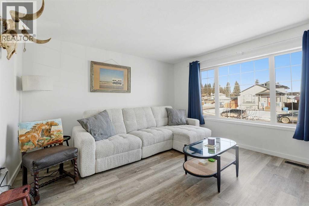 Welcome to this well-cared-for bilevel home located in a prominent, family oriented subdivision in Rocky Mountain House. Pride of ownership is evident throughout this 4 bedroom /2 bathroom home which is filled with natural light thanks to the large main floor windows. Recent updates include new vinyl plank flooring , baseboards and paint throughout all levels and rooms, along with newer high-end Whirlpool kitchen appliances. The shingles were replaced approximately 5 years ago, hot water tank in 2018 and the furnace had new thermostat, blower motor, and circuit board installed. The large fully fenced back yard offers plenty of space and features a built in dog house - perfect for your furry companions. There is plenty of room to build your dream garage in the back as there is parking for 3 + vehicles. Located close to parks, playgrounds, school bus service and all the amenities families need this move in ready home is an excellent opportunity for first time buyers looking to put down root in a welcoming community. (31599806)