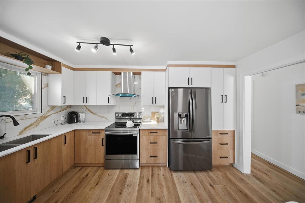 4G//Winnipeg/OPEN HOUSE SAT, SUN 2PM-4PM . Offers on Feb.12th.Fully renovated 1,237 sq ft bungalow in the heart of Garden City, backing directly onto Seven Oaks Arena! This spacious home offers 5 bedrooms plus a den and 2.5 bathrooms, perfect for growing families or multi-generational living. The main floor features a primary bedroom with 2-piece ensuite, two additional good-sized bedrooms, 4 piece bath with ceramic tile tub surround, a bright great-sized living room, and a beautifully updated kitchen with quartz countertops, tiled backsplash, stainless steel appliances, and a cozy dining nook plus formal dining area. The basement offers a separate entrance, two bedrooms, a den, a 3-piece bath, and a huge rec room, ideal for extended family or future rental potential. Quality upgrades include vinyl plank flooring, tiled bathrooms, new vanities, acrylic standing shower in basement bath, newer paint throughout, and hot water tank (2026).Complete with a single attached garage and surrounded by high-demand amenities including daycare, transit, Garden City Shopping Centre, restaurants, and grocery stores. Some pics and video of the house were taken in Fall. A move-in-ready home in an unbeatable location! (231919986)