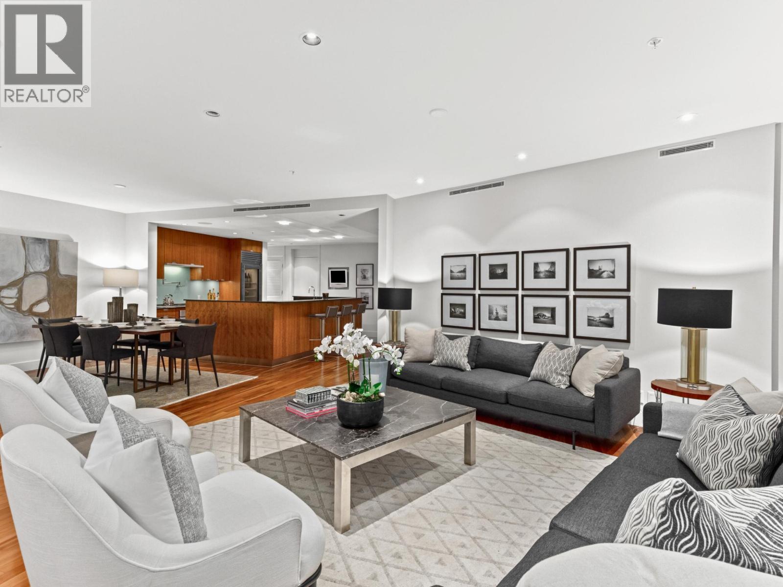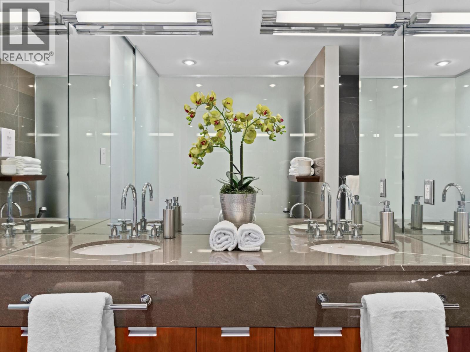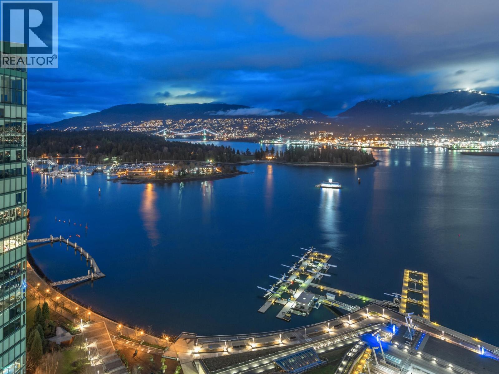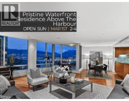 Exceptional WATERFRONT residence at Rogers Tower with stunning ocean, mtn & city views from one of Coal Harbour´s premier addresses. Refined interior feat a chef´s kit with black granite counters, full-height cabinetry & custom expanded island (pre-construction upgrade). Spacious lvg & din areas ideal for entertaining with accent lighting & surround-sound wiring. Over-height ceilings thruout, incl 9´ ceilings in bdrms, enhance volume & light. Automated sunshades with full blackout, hardwood floors, a cove ceiling at entry & a bespoke over-height wood entry door elevate the arrival experience. Building offers commercial-grade curtain wall glazing, extra-thick concrete flr slabs for superior sound insulation, private residential lobby, 24-hr concierge, high-speed elevators, fitness ctre, priv. screening rm & exec boardrms. Steps to the seawall, marina, Stanley Park, Vancouver´s finest dining, cafés & dtwn amenities. Incl 2 SXS pkg stalls with EV charging. A truly special waterfront home- one you won't want to miss... (32405107)