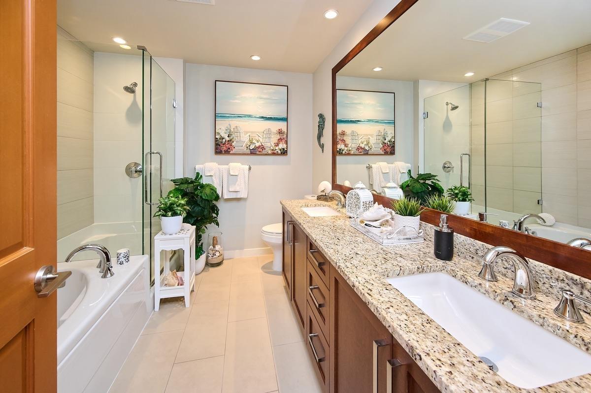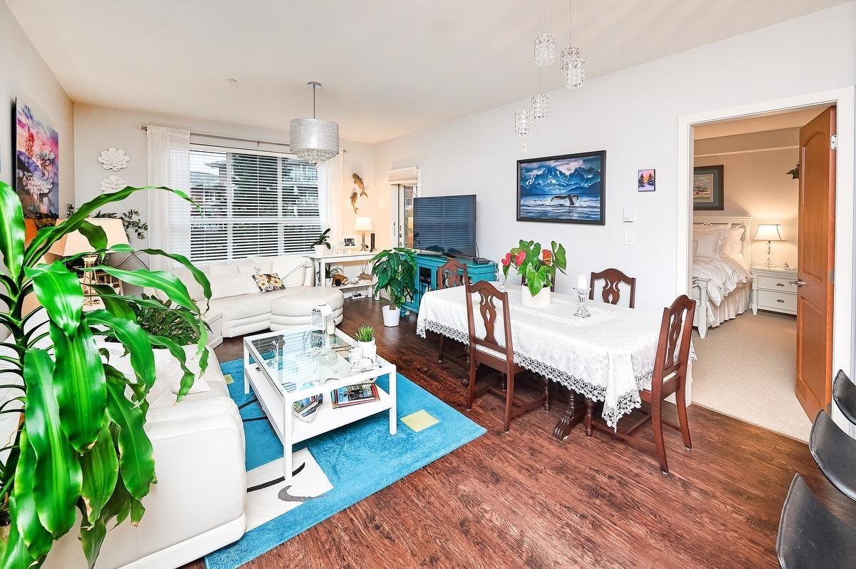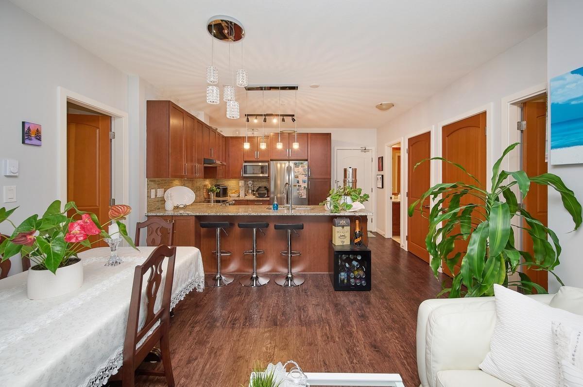 Welcome to AWARD-WINNING WATERSTONE - a prestigious, sought-after community known for refined living and pride of ownership. This spacious 2 bed, 2 bath home offers a rare double primary layout, providing privacy and flexibility. South-facing with abundant natural light and peekaboo Mt. Baker views, the patio opens onto a private upper courtyard, creating an elevated and secluded outdoor space.The open-concept kitchen and living area feature full-size stainless steel appliances. Includes 2 parking stalls and a storage locker. Enjoy resort-style amenities including a 60-ft indoor pool, gym, sauna, games room, party room, and theatre. Conveniently located just 5 minutes to schools, Willowbrook Mall, Costco, T&T and more, with easy access to Hwy 1 & 10 and the future SkyTrain. (32407321)