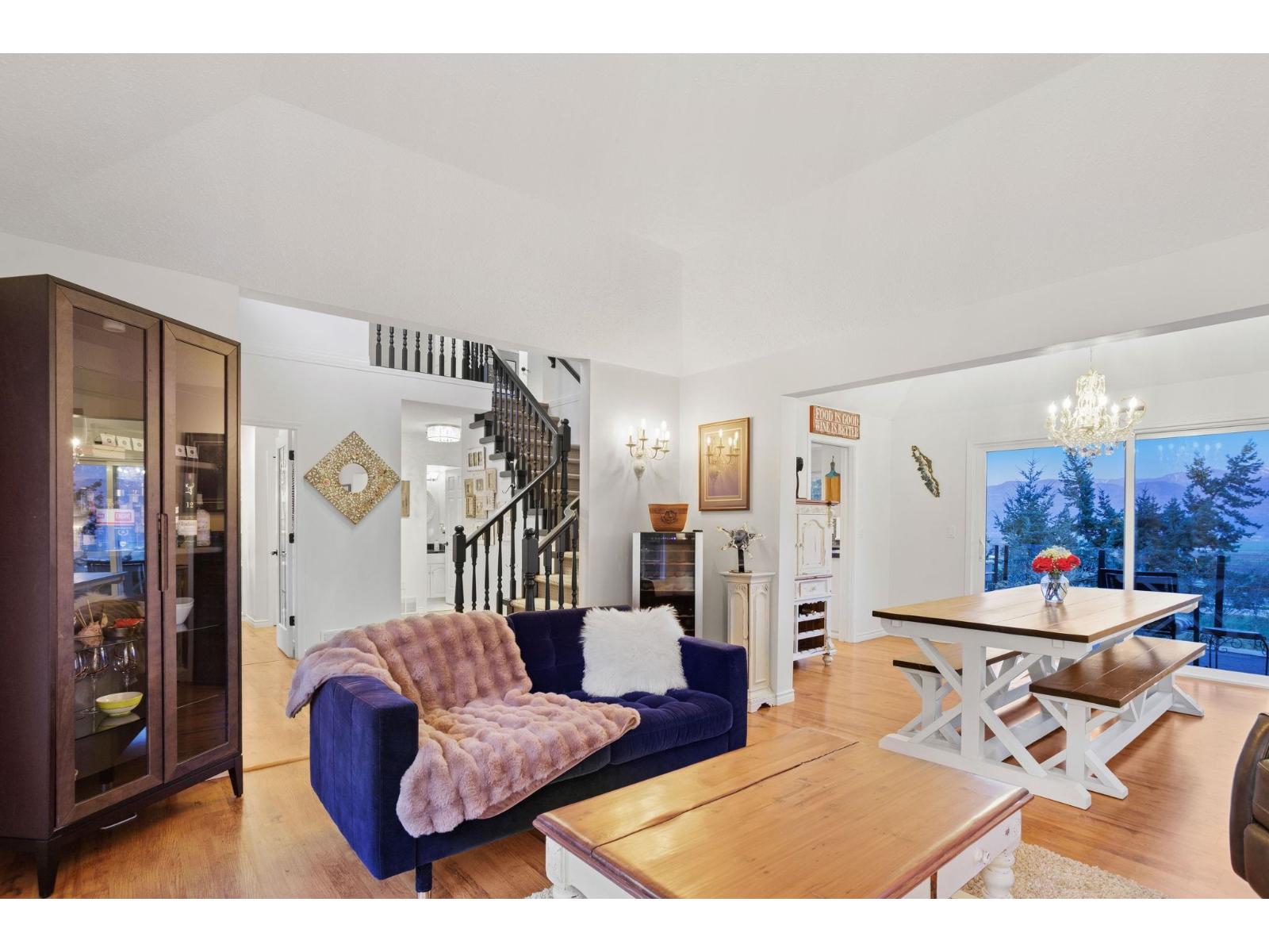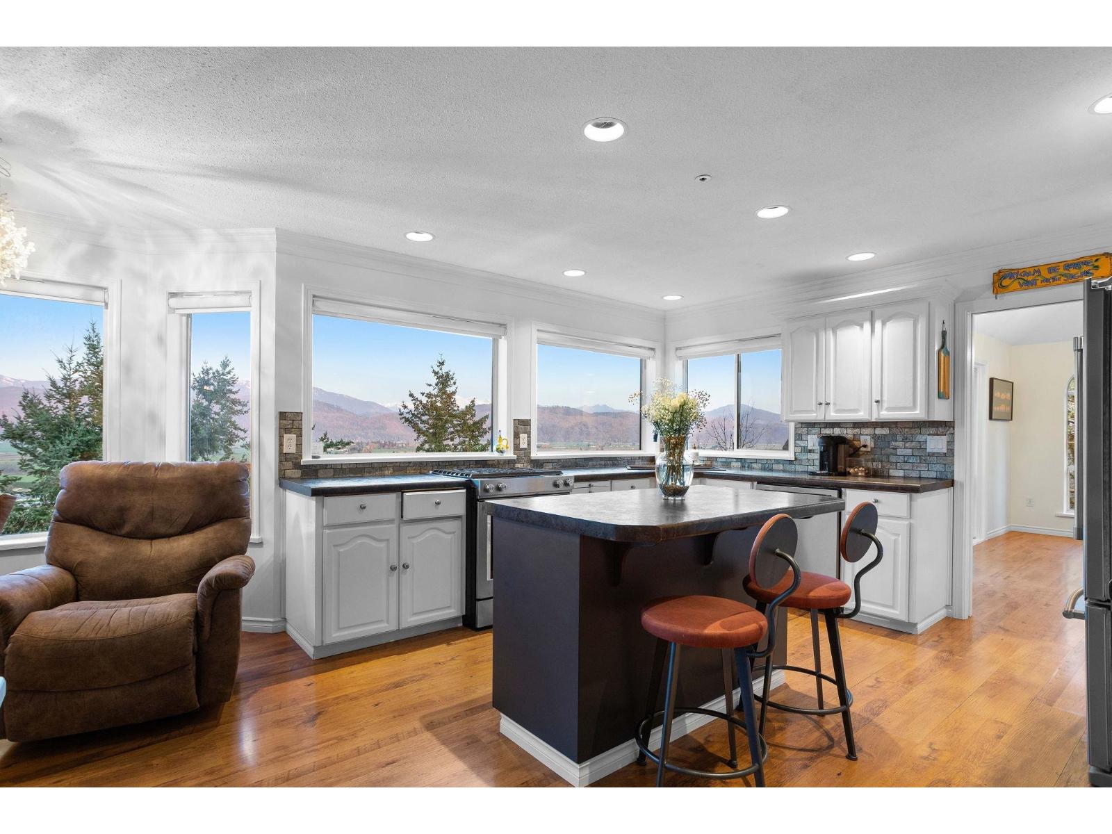 An exceptional estate on a quiet private road in East Abbotsford. Set on over 39,000 SqF, this 4 bed + Den, 3.5 bath home offers panoramic views, a nearly new heated 24' custom steel pool, & expansive outdoor living with multiple patios and decks. Inside, you'll find over 3,400 SqF of thoughtfully designed space, including a bright open main floor with vaulted ceilings, a large kitchen, formal living/dining rooms, & a cozy family room with direct balcony access. Upstairs, the primary suite boasts its own balcony & a luxurious 5 piece ensuite. The lower level features a media room, rec space, & bedroom - with suite potential already having separate entry - ideal for extended family or guests. A rare offering that combines privacy, space, & stunning views in the prime neighbourhood. (32407506)