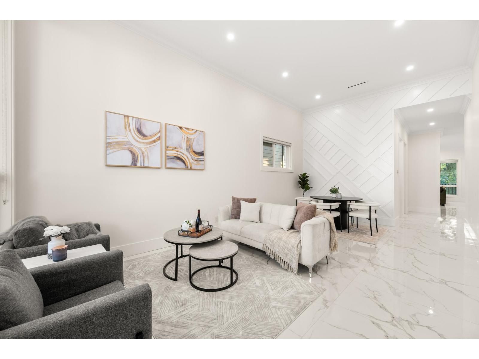 Welcome to this brand-new custom-built home offering 8 bedrooms, 6 bathrooms, and nearly 4,000 sqft of luxurious living space. Designed with soaring ceilings and expansive windows, the home is filled with natural light. The chef's kitchen features quartz countertops, stainless steel appliances, a built-in wall oven and microwave, plus a spacious wok kitchen. Elegant tiling, cozy electric fireplaces, built-in vacuum, and security cameras add comfort and peace of mind. Two mortgage-helper suites provide excellent value and flexibility. Ideally located near King George Hub, Save-On-Foods, restaurants, transit, and major routes, with breathtaking mountain, water, and city views. In James Ardiel Elementary and Kwantlen Park Secondary catchments. Book your showing today! (32407716)