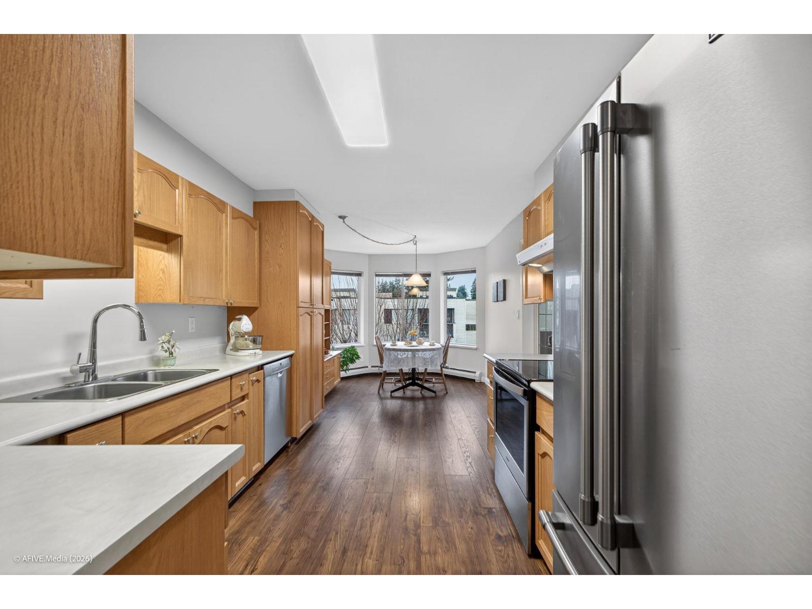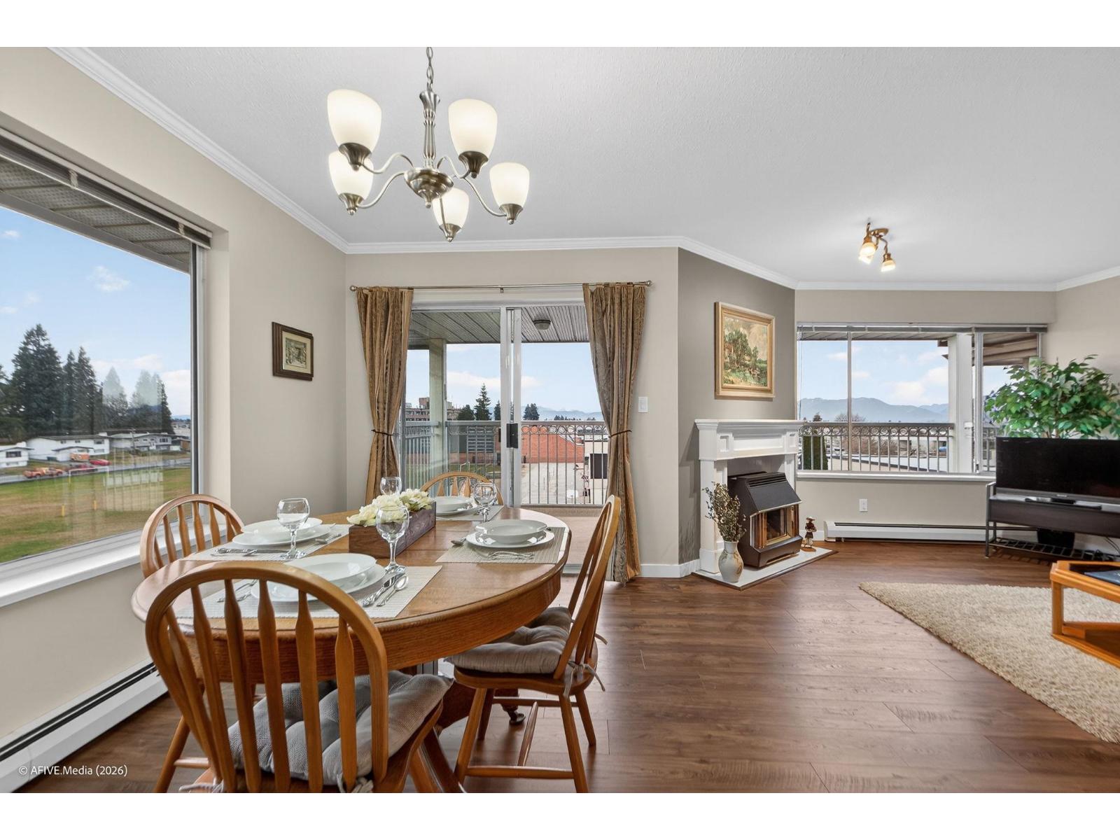 As the saying goes "location, location, location" You can renovate but you can't change the view or location. This 1234 sqft TOP FLOOR CORNER unit across the street from Mill Lake Park offers a spectacular view of the mountain ranges in Golden Ears Provincial Park. Every day is a beautiful day with plenty of natural light from the skylight and unobstructed views from the north facing windows. Enjoy the many updates, the bright open kit and spacious living & dining area or step out to a private balcony to take in the fresh air and view. A well cared for and maintained home that is move in ready with in suite laundry, upright freezer, huge pantry, gas F.P. and storage locker down the hall. This well run 55+ building offers a lounge, rec rm with kitchen, gym and workshop, so there's lots to do. Join the weekly social gatherings or puzzling in the lounge or have a friend stay over in the guest suite. Steps Seven Oaks Mall, West Oaks Mall and a host of other shops and amenities. Rarely available so don't wait. (32407599)