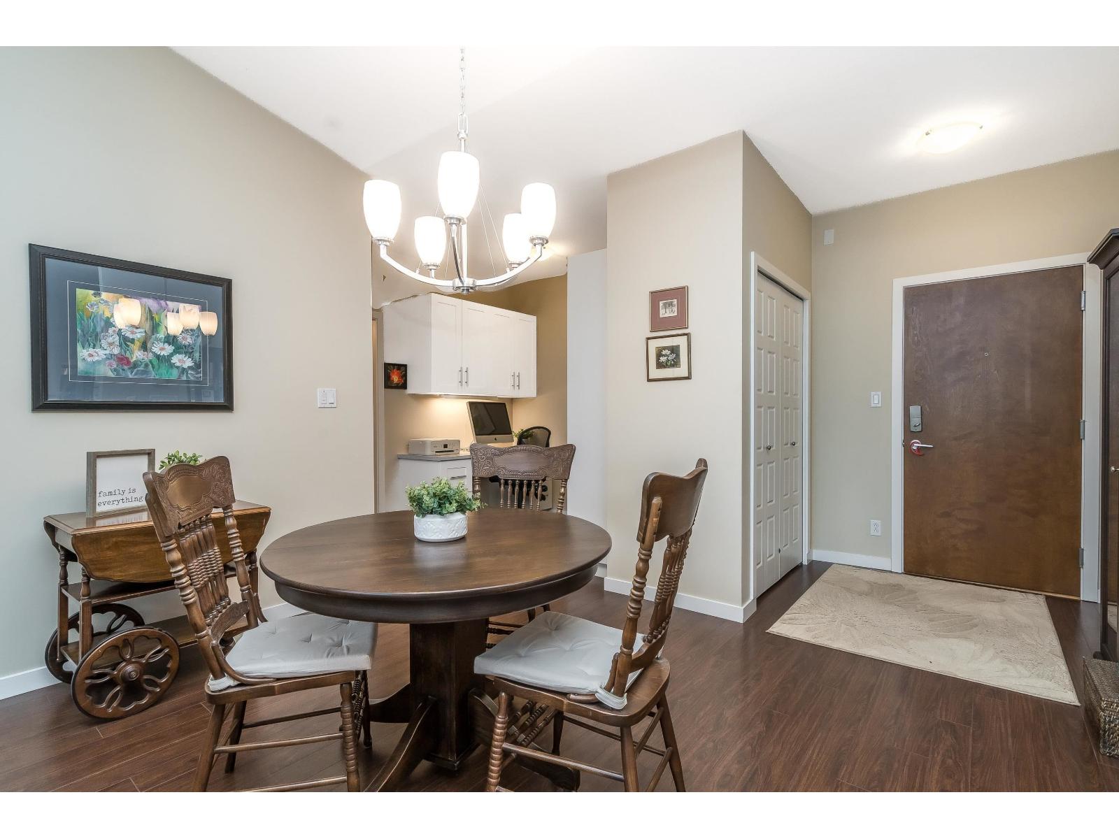 WATERFRONT LIVING AT ITS BEST! Rarely available, spacious 1,300+ SF 2-bdrm & den home located in the highly sought-after Waterfront at Bedford Landing in Fort Langley. Enjoy soaring vaulted ceilings in the living room & 2nd bdrm, flooding the space with natural light & stunning river views. The well-appointed kitchen features ample cabinetry & counter space, plus an oversized island. The generous primary bedroom offers a large W/I closet & a spa-inspired ensuite w/ soaker tub & walk-in shower. Additional highlights include side-by-side parking conveniently located near the elevator, a mini-split A/C system added in 2023, and custom built-in cabinetry and desk in the den-ideal for a home office. Set within a vibrant, community just steps to restaurants, shopping, scenic trails & more ! (32409106)