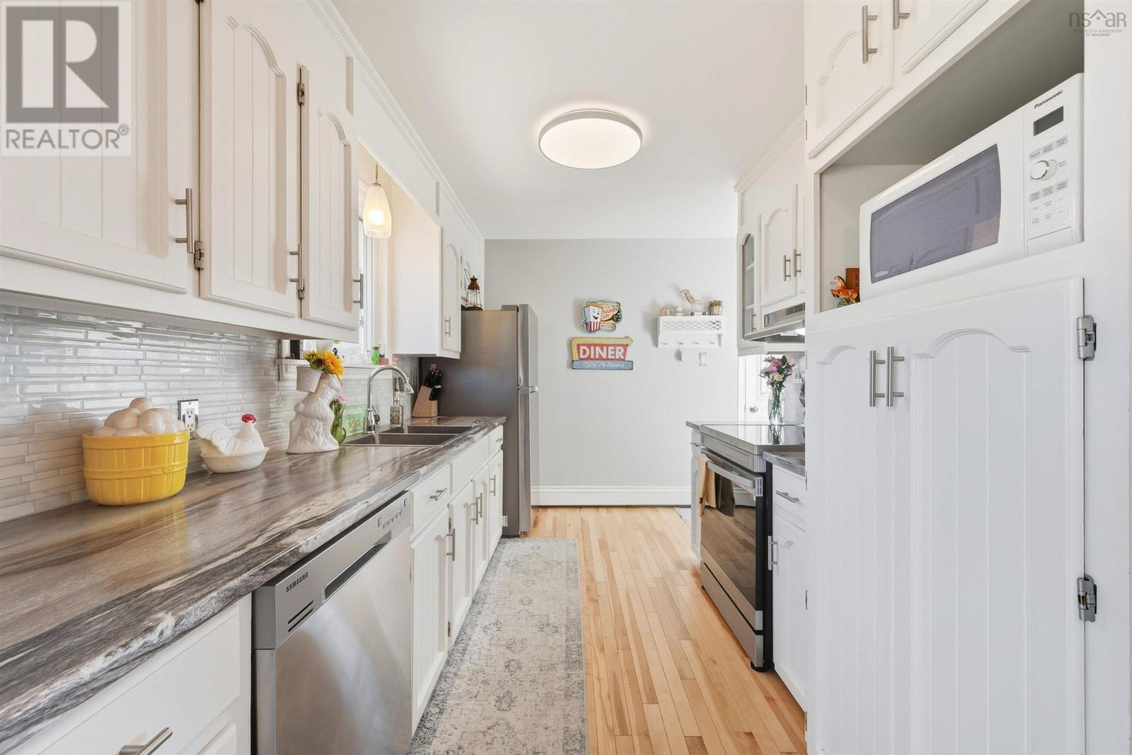 Welcome home to your beautifully updated home in popular Falmouth! You will feel particularly comfortable when you enter this warm and well cared for home on Town road. The pride of ownership shows throughout. With 3 bedrooms, and 1.5 baths, lovely common spaces and gorgeous hardwood floors it is as move-in ready as they come. Several rooms have been freshly painted, new heat pumps, new stainless steel appliances, updated fixtures, large deck, newly fenced backyard, and detached garage round out the reasons this one is an absolute gem. The outdoor spaces are as charming as the outdoor spaces - with lovely landscaping - including newly planted Japanese and Magnolia trees, plus a 20x24 detached garage. You are 5 minutes to Windsor, and 45 minutes to Halifax in a serene sought after neighbourhood where you can really let your hair down and relax. (231925661)