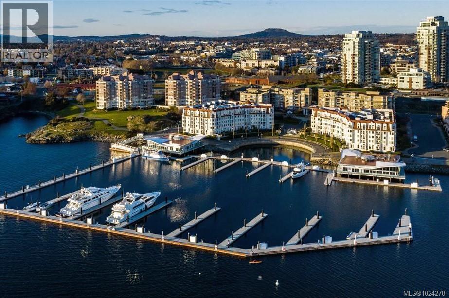 OPEN HOUSE SUN 12:30-2 pm. SPECTACULAR WATER VIEWS of OGDEN POINT and WESTBAY MARINA. 2 Parking Spots . A spacious 2 bedroom, 1 bathroom condo in the highly coveted Sea West Quay complex. Updated in 2018, the kitchen features quartz countertops and beautiful maple cabinetry, with separate dining area and newer vinyl plank flooring throughout. You will spend countless hours enjoying the serene view from the cozy living room with a natural gas fireplace (gas included in strata fees). The second bedroom has French doors which makes this space ideal for an office, hobby room or an extra space for guests. The primary bedroom features a walk in closet and access to the main 3 pce bath with beautiful marble floors. Hot water tank updated 2024. Condo comes with two parking spaces (plumbed for EV charging station), and separate storage unit. This complex has so much to offer, including a common room, workshop, pool table and gym. Easy access to Songhees Walkway, transit, minutes to downtown, shopping, restaurants and more. (30349234)