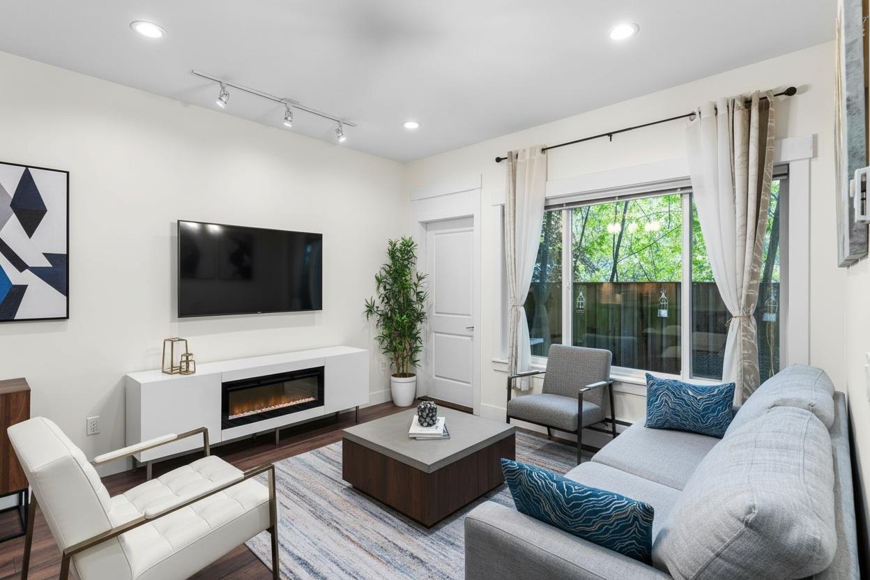 YORK Living craftsman-style townhome offering over 1,800 sq.ft. of modern, functional living. Main floor features a stylish kitchen, spacious living & dining areas, and a powder room. Upper level offers 3 bedrooms including primary with 4-pce ensuite, open den, laundry, and full bath. Top floor boasts a 25' x 14' attic room with full bath-ideal for media room, games room, or extra bedroom. Bright interiors with 9' ceilings and stone fireplace. Well maintained with recent upgrades incl. new washer, bathroom sink, toilet seat & additional plumbing improvements. **Photos are virtually staged** (32410816)