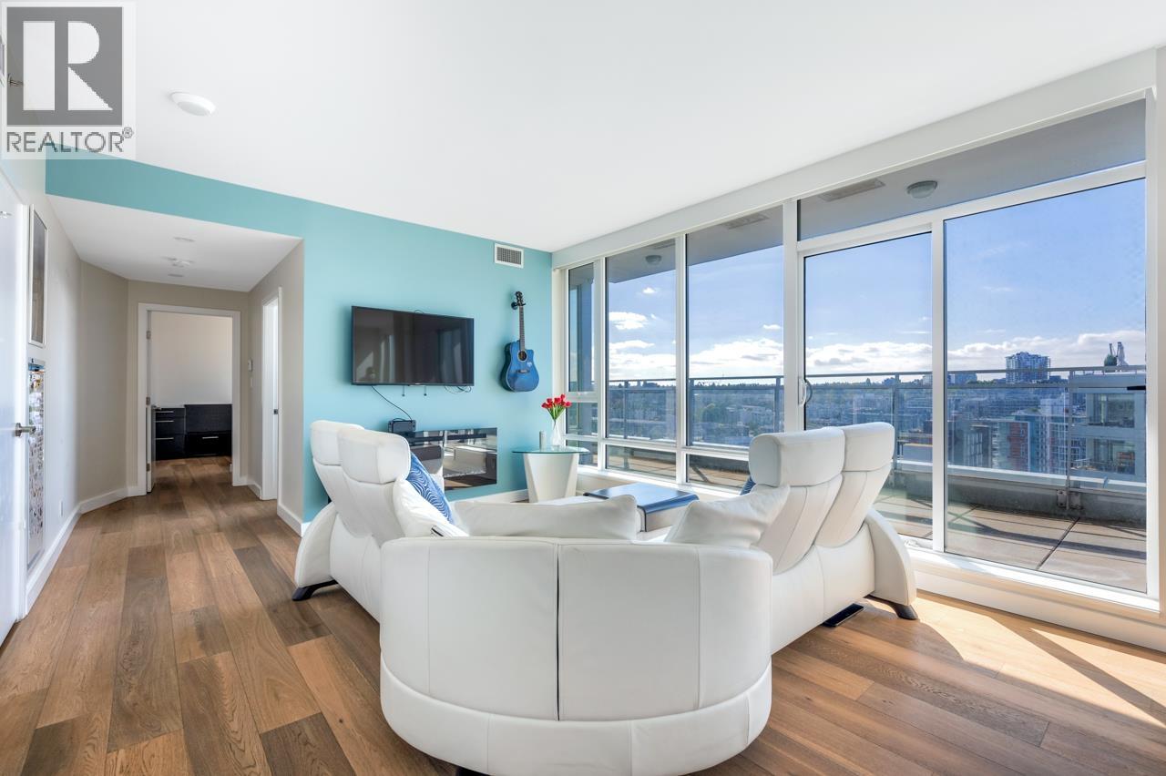 One of the most stunning Sub-Penthouse units in town! The CENTRAL built by ONNI. An Architecture Masterpiece located in the best location of Vancouver. South facing 1200 sqft 2 bdrm & Flex Sub Penthouse boasts stunning views of the city. Floor-to-ceiling windows allow ample light, Lavish furnishings incl Smart Home setup, upgraded engineered oak floors, Carrera marble, travertine limestone, and integrated premium WOLF/Miele appliances. Independent AirCon. A Large locker & Private 2 car gated garage with EV plugs! World class amenities including a fully equipped Gym, Party room, Bike room, Yoga room, Sauna room, Rooftop lounge, Movie theatre, and a 24 Hour concierge! Steps to the Skytrain, Seawall, Science World, Olympic Village, Restaurants, Breweries and so much more! (32412500)
