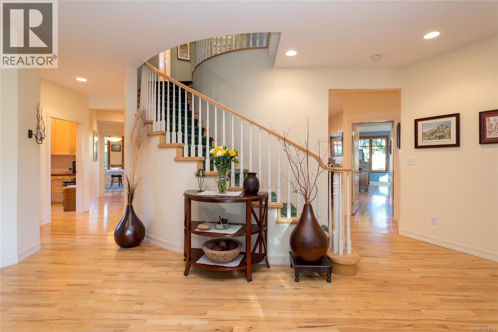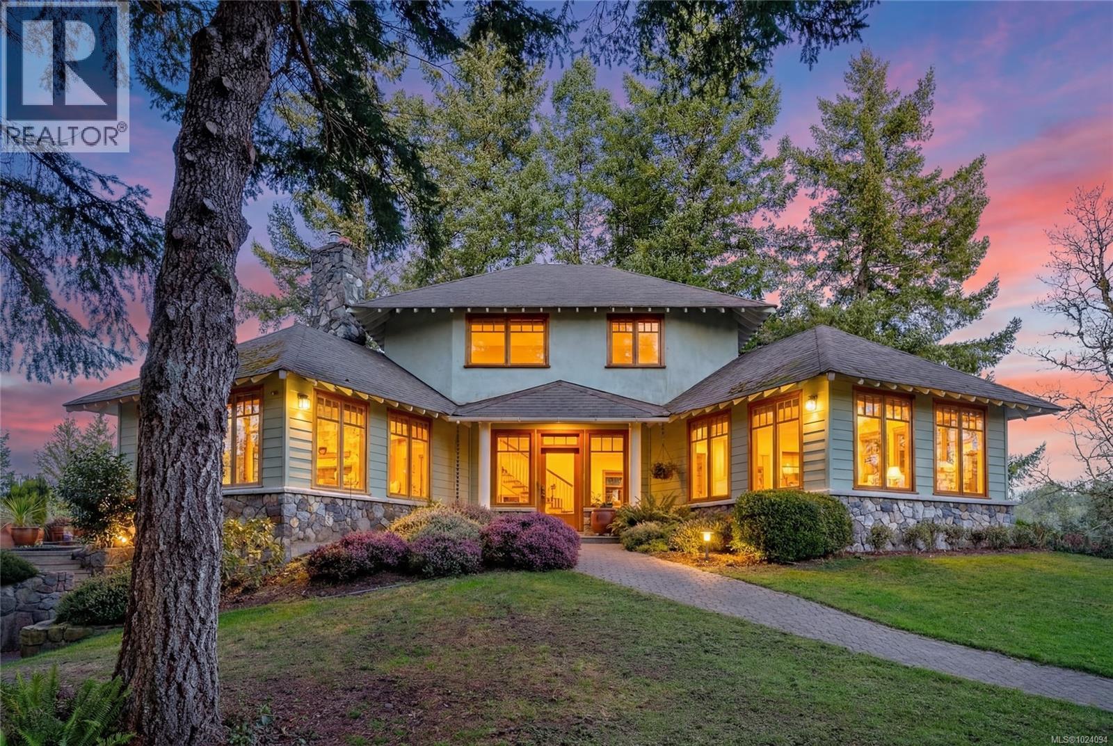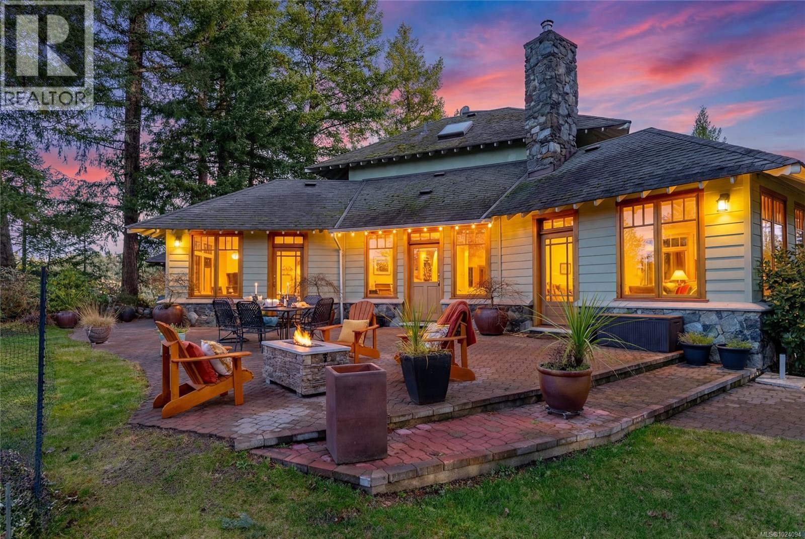 This 4 bed, 3 bath custom-built home (plus a 1 bedroom suite!) is a true showcase of craftsmanship & thoughtful design with exceptional attention to detail throughout. Set on just under 10 acres, the property offers complete privacy while remaining only minutes from restaurants, stores, bus routes, & Camosun College. The home is filled with natural light, thanks to the many wood-framed windows thoughtfully positioned so each room enjoys sunlight at different times of the day. Inside, you’ll find two inviting sitting areas, one anchored by a beautiful stone feature fireplace. A curved staircase adds architectural interest, while stunning red oak flooring extends across the main level & upstairs bedrooms. The main-level primary suite offers comfort & convenience, featuring an updated shower, electric blinds & three closets for excellent storage. Hydronic heating runs throughout the home, providing consistent & efficient warmth. The custom kitchen is both elegant and functional, highlighted by curved cabinetry that flows into a well-designed workspace with abundant storage. From here, the home opens effortlessly to an interlocking brick patio, ideal for indoor-outdoor living. The spacious dining room also connects directly to outdoor space, perfect for entertaining. Every window offers a view of unparalleled privacy and natural surroundings. Outside, the grounds are lush & serene, featuring mature greenery, a fenced garden area, a glass greenhouse, a built-in BBQ & a hot tub. Drip-line irrigation supports the beautifully maintained landscape. Upstairs are three generously sized bedrooms & a third bathroom. Additional highlights include vaulted ceilings, a generator system & a double garage with a dedicated workshop. Above the garage is a lovely one-bedroom suite with a separate entrance, its own laundry & a private deck, ideal for guests, family, or additional income. A rare offering that combines privacy, craftsmanship & convenience in a truly special setting. (30350043)